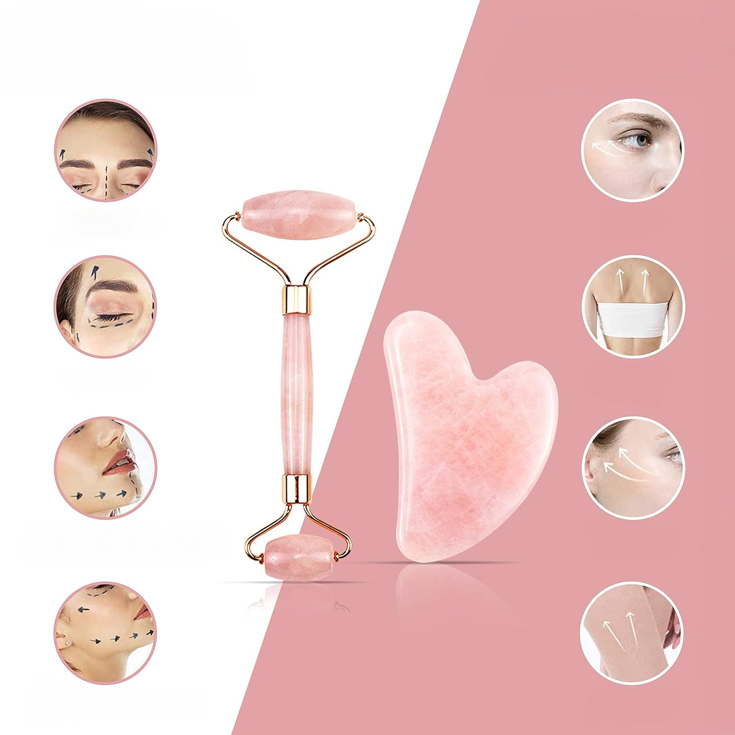 Розслаблюючий масажер з натурального каменю - рожевого кварцу і пластини Гуа Ша чудово підійдуть як для масажу обличчя перед нанесенням косметики, так і для вечірнього догляду за обличчям.