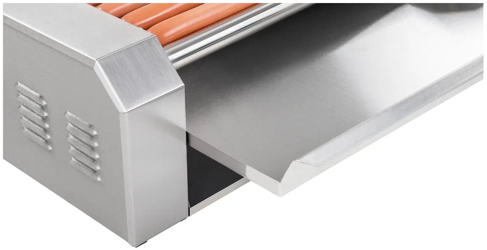 Ролики (5 шт.) виготовлені з нержавіючої сталі. Вони обертаються на 360°, завдяки чому сосиски, що лежать між ними, прогріваються рівномірно. Температура плавно регулюється до 250°C. Сосиски кожного разу рівномірно підрум'янюються і виглядають апетитно!