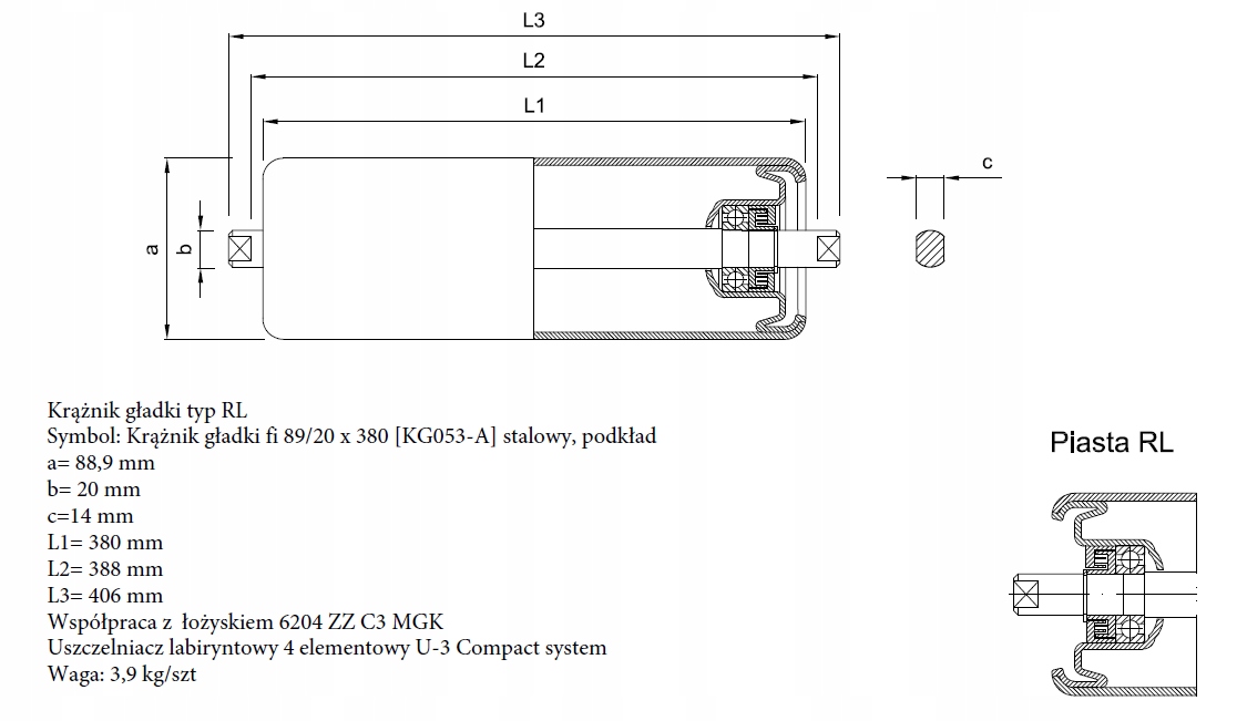 Крейсер виготовлений з труби Fi 89 x 3.2 та вісь FI 20 мм, вбудованих на підшипник 6204 Rs/ZZ і захищається ущільненнями типу компактного типу U-3 проти пилу та інших домішок (це подвійний лазелінт із розсувною обсмажкою). підшерстя. Він має два притулки, що піднімаються за межі контуру пальто з визначеними шириною 14 мм на глибині 9 мм. Основні параметри: