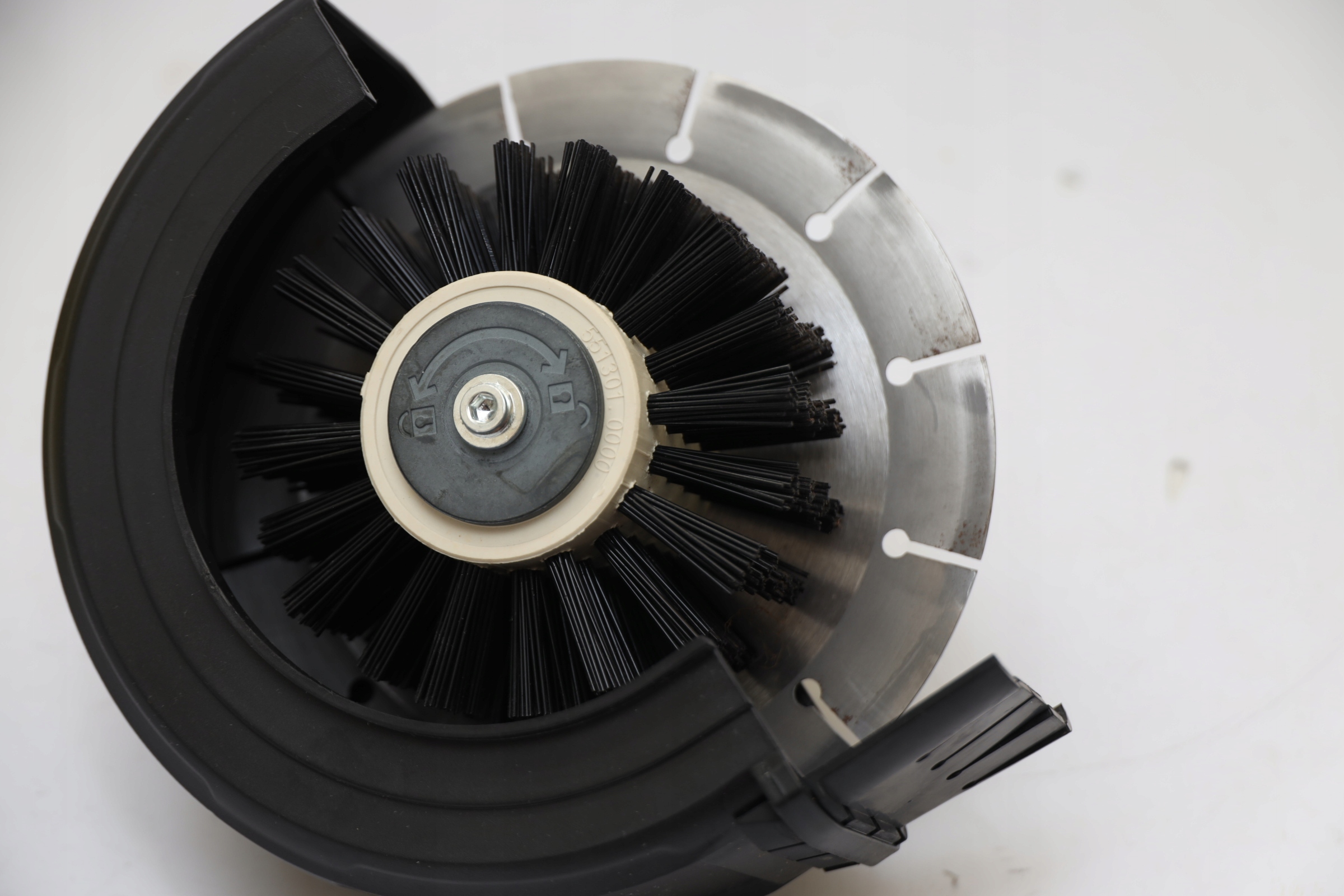 Щит з нержавіючої сталі потрапляє в землю, хапає лопатки і скорочує його. У той же час нейлонова щітка (середня тверда) очищає край каменю з бруду.