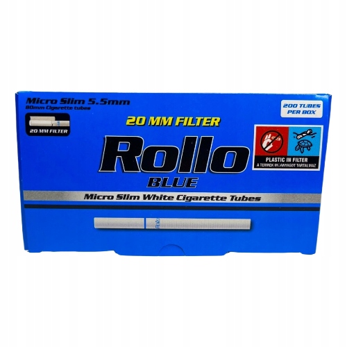 Трубки для сигарет Rollo Micro Slim Blue високої якості діаметром 5,5 мм, в упаковці 200 шт., в трубках є фільтрувальна вставка довжиною до 20 мм, що знижує вміст шкідливих речовин.