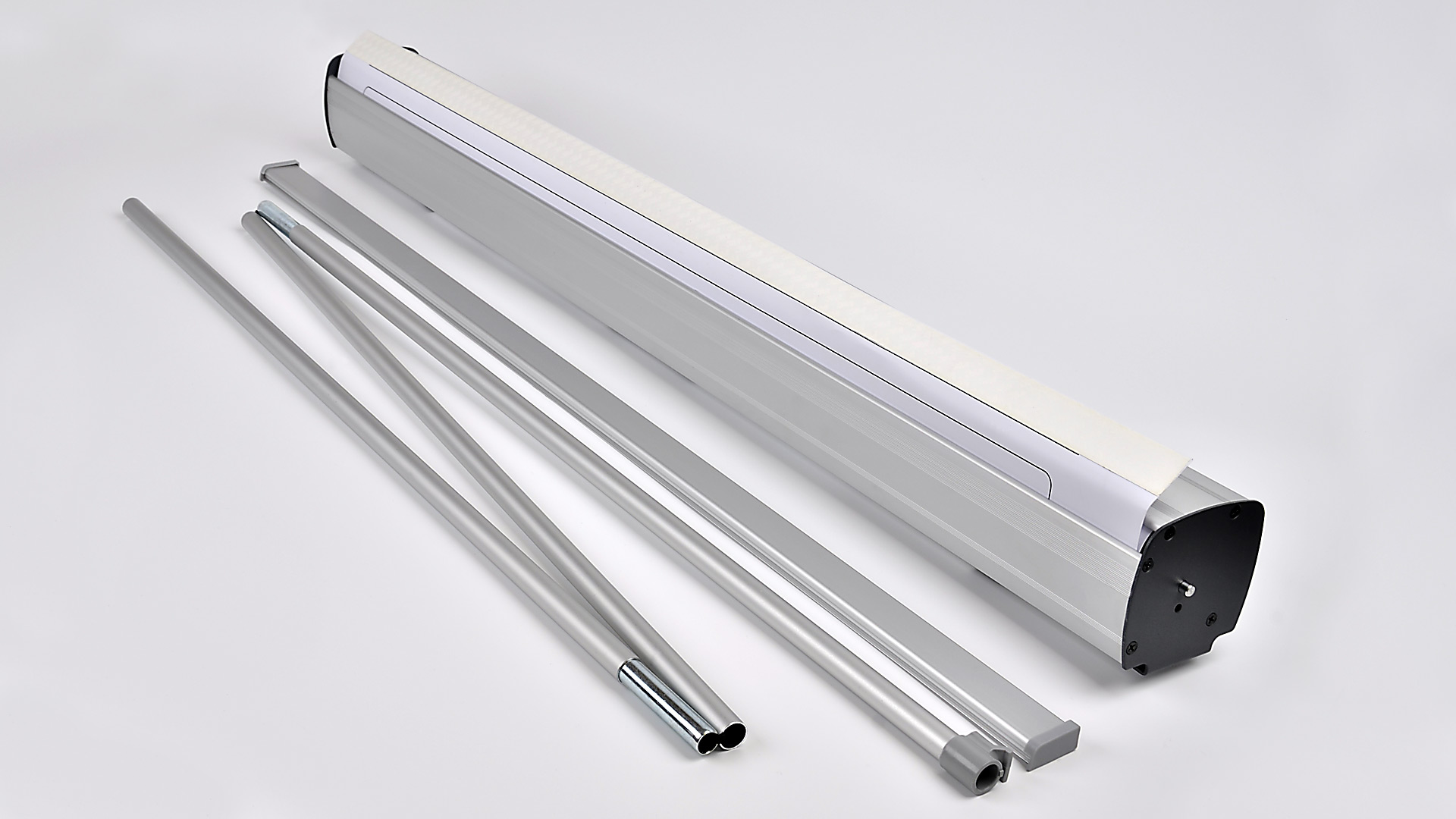 Нашу алюмінієву касету легко зібрати та вона стабільна в розкладеному вигляді. Блокуючий матеріал із сірою підкладкою запобігає просвічуванню світу, коли ми кладемо рулон біля вікна. Матеріал жорсткий і не скручується, елегантно подає графіку без відблисків світла. Розмір ролл-апу в розкладеному вигляді 200х85 см. У набір входить безкоштовна сумка.
