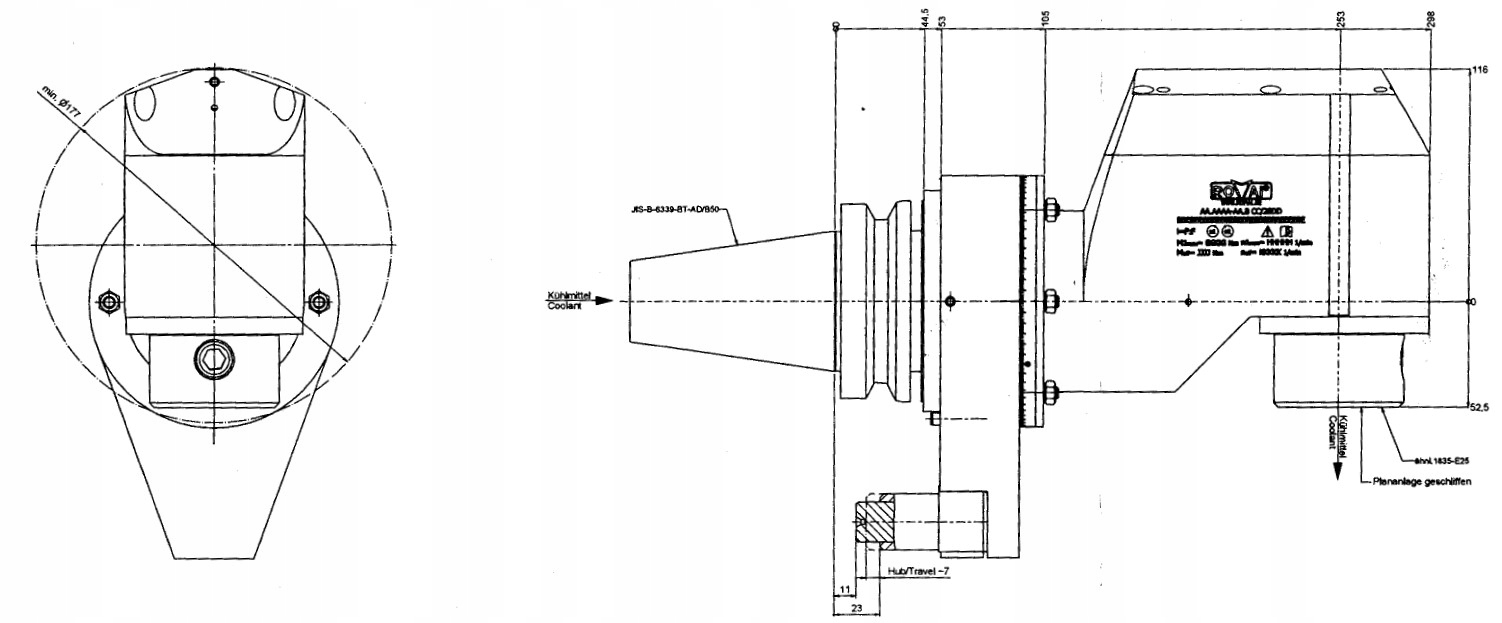 Romai W10-BT50 90 ° 1: 1 Weldon 25 до фрезерної машини