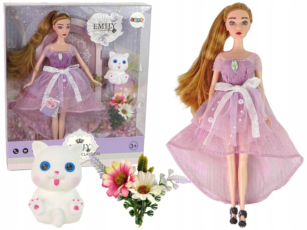 Представляємо чарівну ляльку Емілі з довгим світлим волоссям. Ця прекрасна лялька одягнена в довгу сукню, яка радує мерехтливими рожевими деталями, декоративними перлами та бантиками. На голові у неї елегантна діадема, а на ногах чорні стильні туфлі на підборах з ніжною трояндою, що додає їй ще більше шарму.