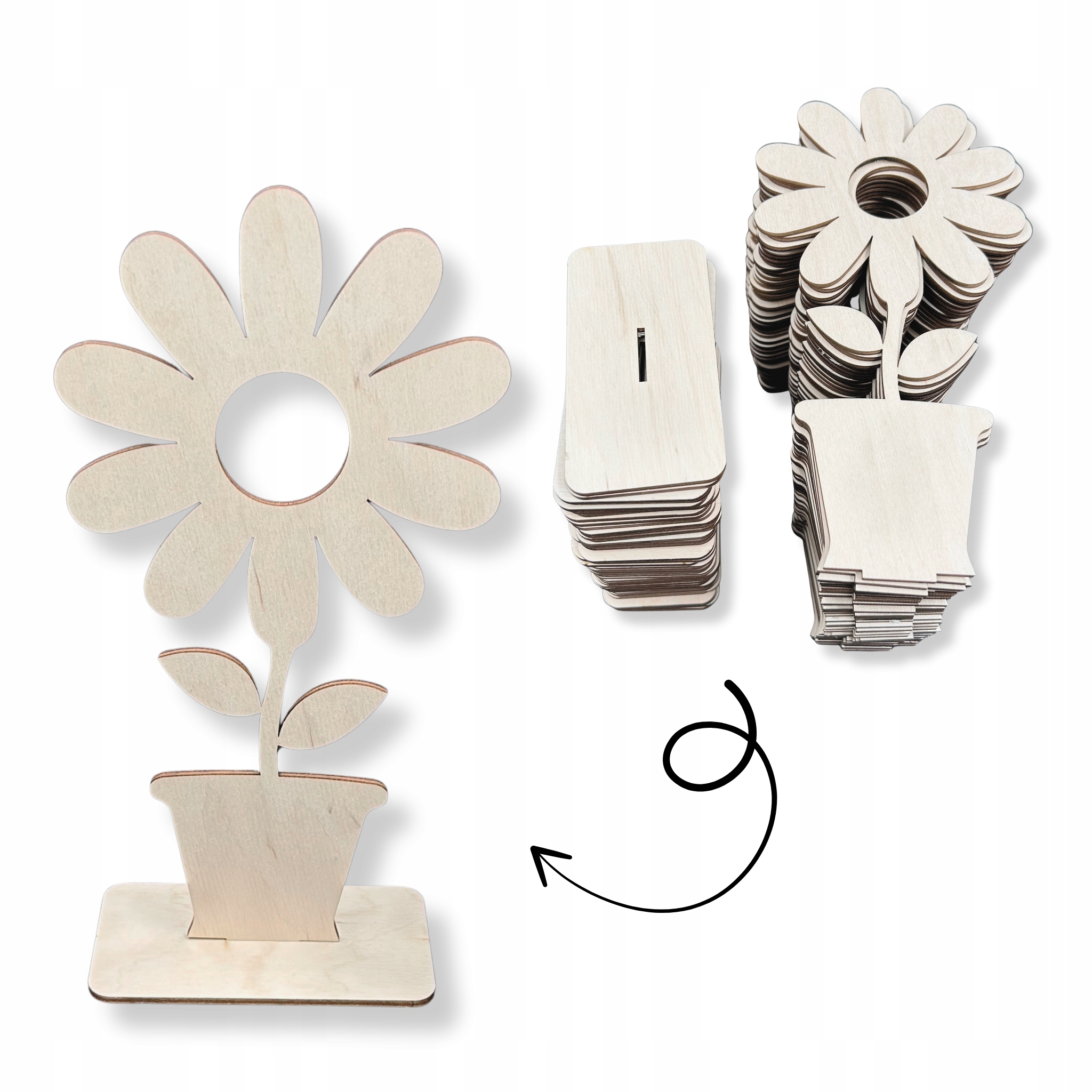 Ромашка в горщику, дерев'яна квітка 25 см, набір 60 шт. для декорування