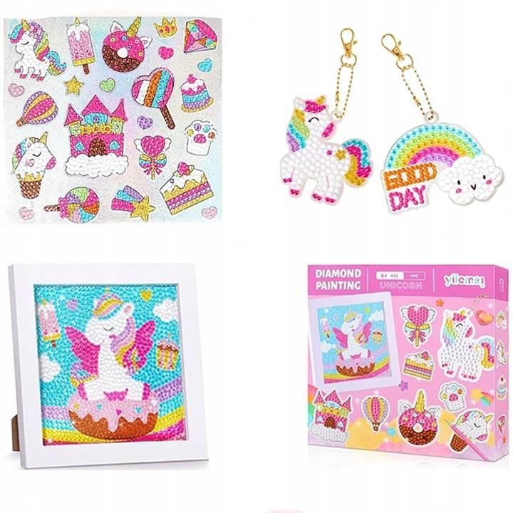 У нашій пропозиції Ви можете знайти інші набори з кольоровими діамантами для склеювання, а також багато інших чудових творчих наборів для дітей. Набір упакований в гарну, веселу і барвисту картонну коробку.
