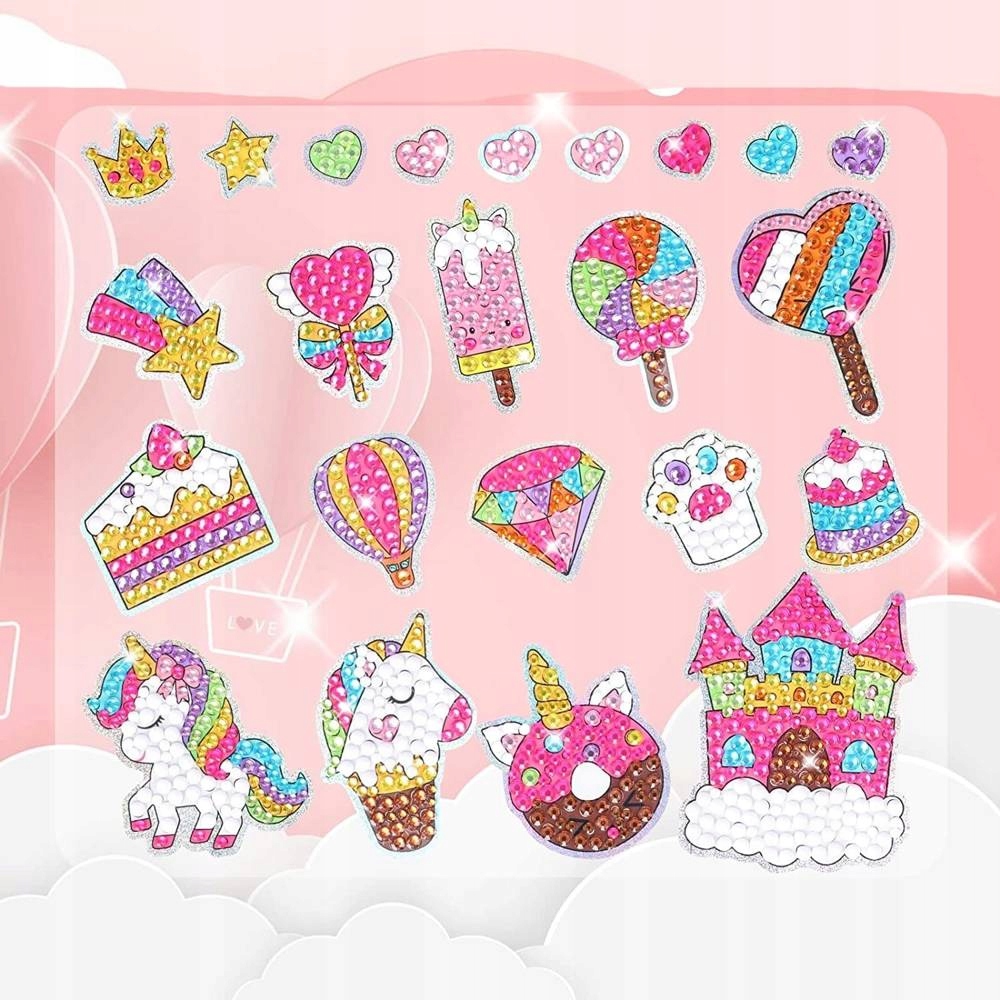 Набір містить наклейки різних форм , які можна прикрасити маленькими блискучими діамантовими каменями.
