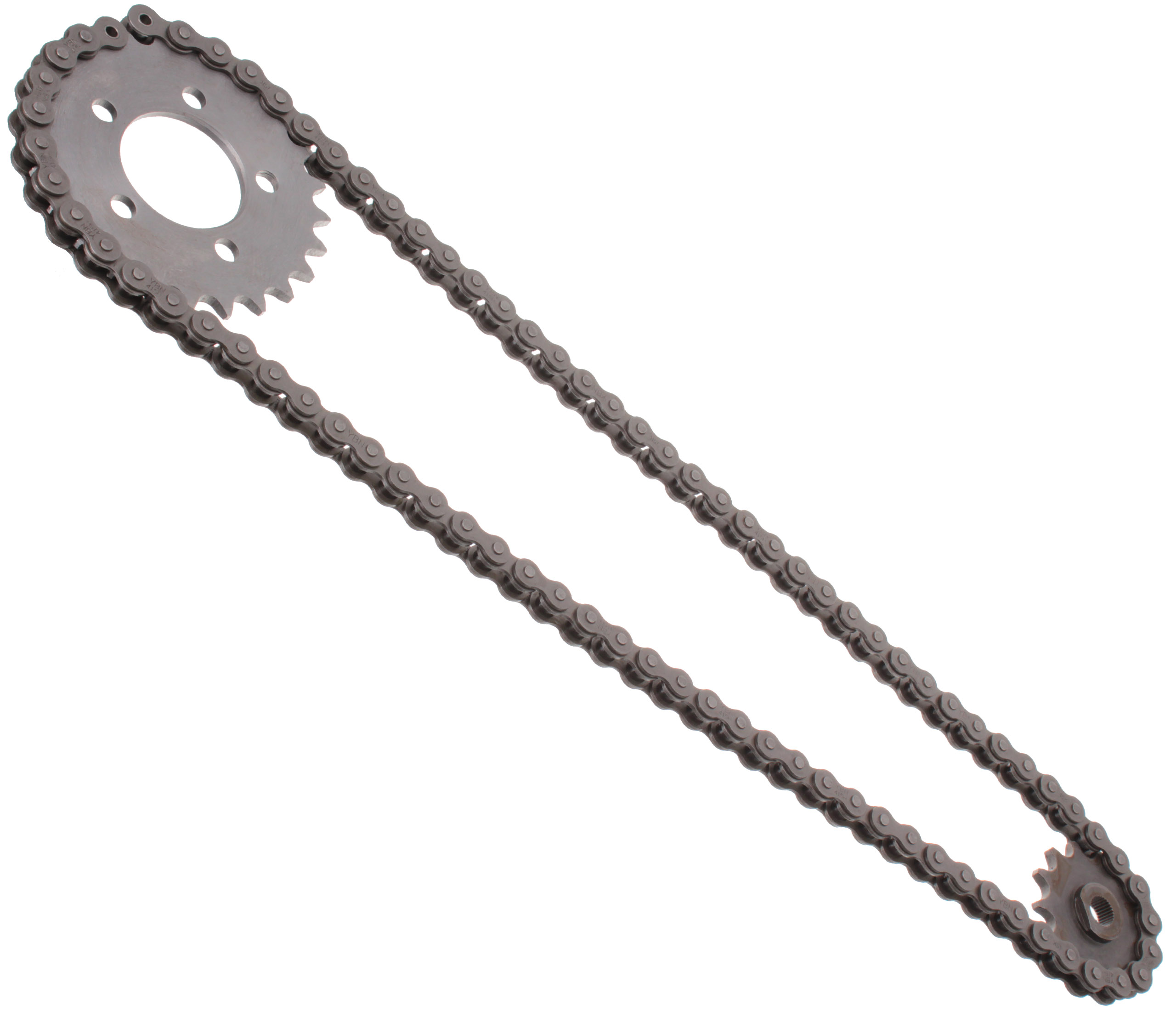 ОПИС: ПОВНИЙ КОМПЛЕКТ ПРИВОДУ - ПРИВОДНИЙ ЛАНЦЮГ З ЗАЖИМОМ YBN ТА ПЕРЕДНІМИ ТА ЗАДНІМИ ЗІРОЧКАМИ.