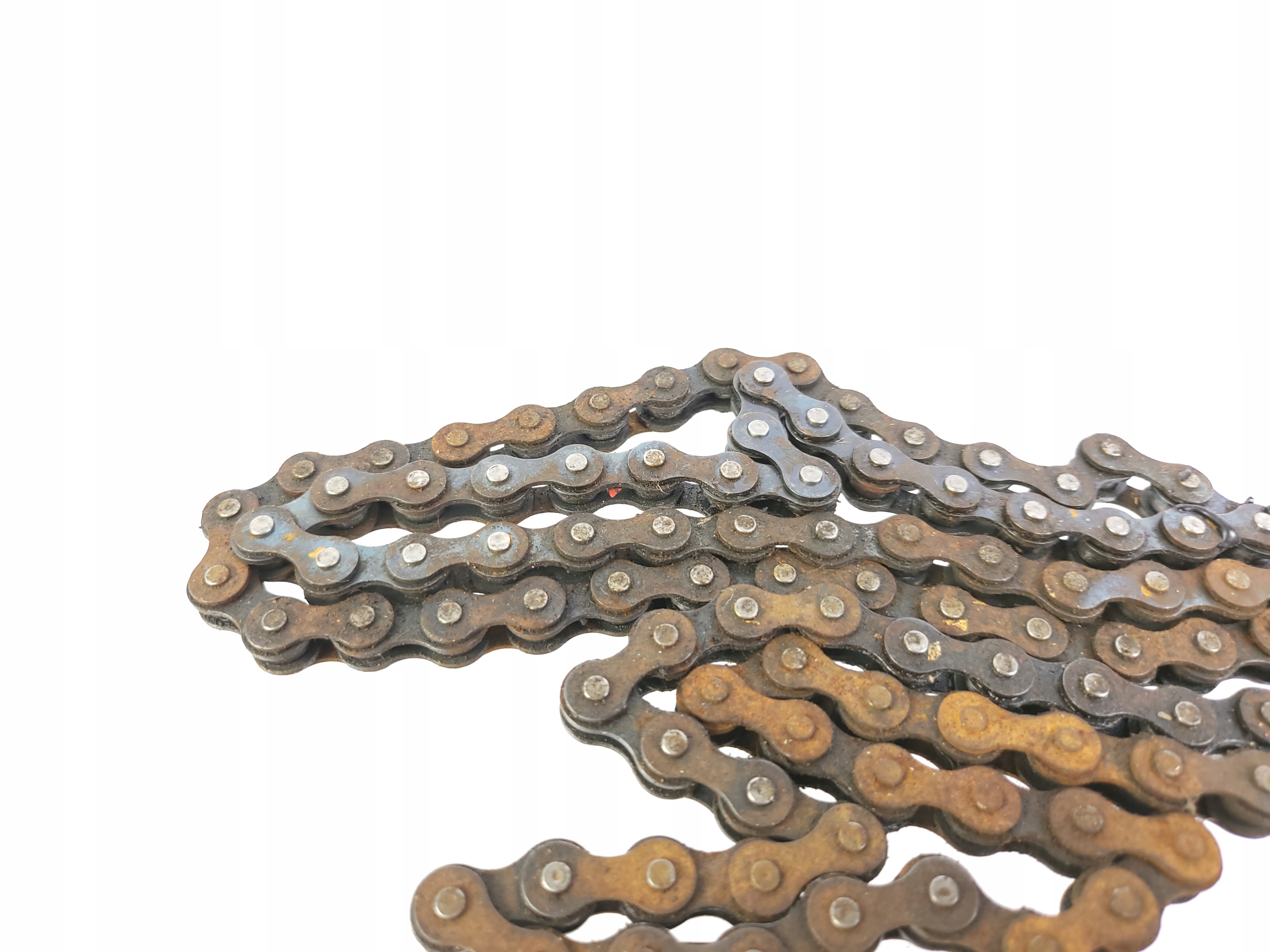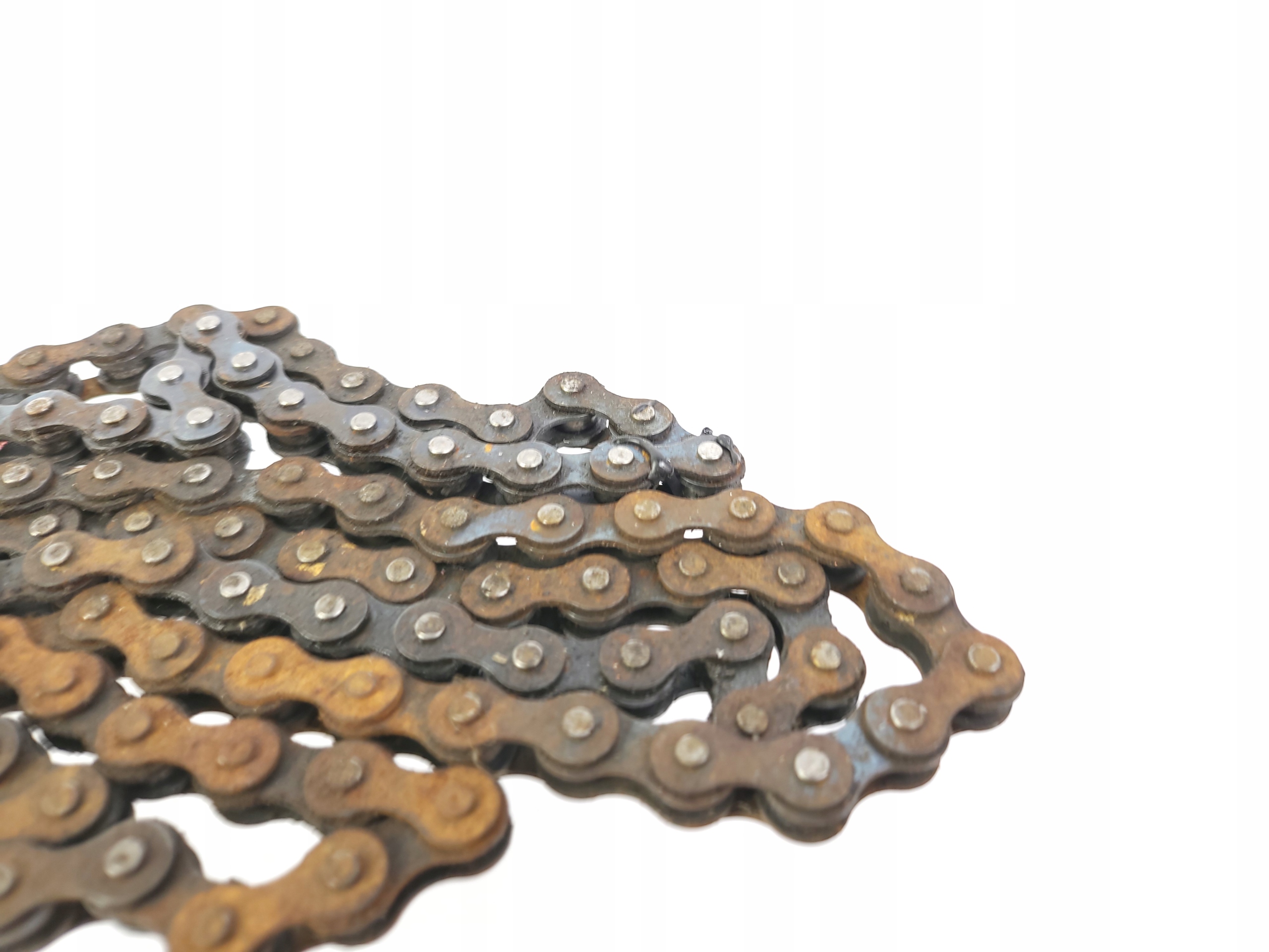 Пропонуємо ланцюг для велосипедів Romet Orion Turing та інших велосипедів з колесами 26 дюймів і контргальмом. Це оригінал, розібраний з велосипеда Romet Orion, технічний стан нормальний, але потребує ретельної чистки та змащення. Застібається на шпильку.
