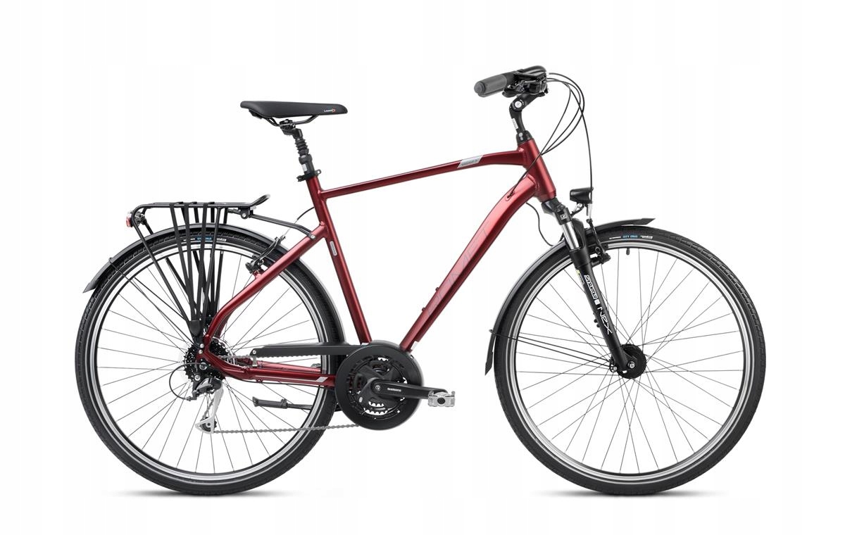 Серійне обладнання Wagant 7 має багато корисних елементів під час довших і коротших атракціонів, що робить цей велосипед дуже універсальним. Суцільний задній багажник дозволить вам взяти практично все, що ви відчуваєте. Набір освітлення зробить ніч, що рухається, а не викликом, а крила в поєднанні з щитом приводу захистуть наш одяг у разі дощу. Wagant 7 - це в першу чергу велосипед, який також може зробити добре поза асфальтовими дорогами. Передній амортизатор Suntour піклується про задоволення від водіння на гірших поверхнях, що 73 мм відрив сміливо пригнічує всю нерівність. Модель має вдосконалений привід Shimano, який відповідає за швидку та плавну зміну в 27 передачах. Це число означає, що жоден пагорб тепер не буде проблемою. Wagant оснащений гальмами Shimano V-Break, що відрізняється правою гальмівною силою та обслуговуванням. Wagant Rolls злегка на 28 -дюймових колесах, які були одягнені в універсальні шини Veetire. Модель поставляється у двох розмірах кадрів та трьох кольорових варіантах.