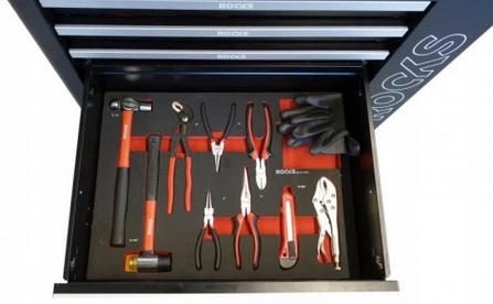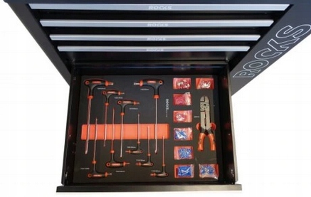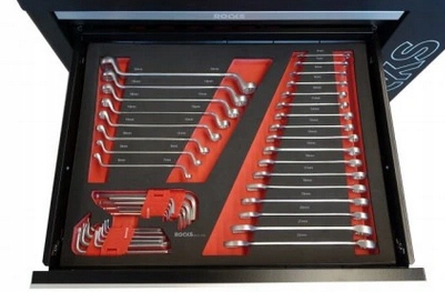 шафа має 6 ящиків та 5 модулів з інструментами. Один ящик залишається в розпорядженні користувача для додаткових спеціальних інструментів.