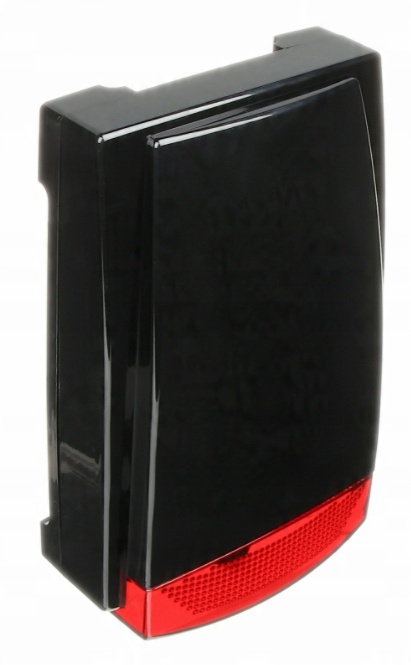 ЗОВНІШНІЙ ПРОВОДОВИЙ ОПТИКО-АКУСТИЧНИЙ СИГНАЛІЗАТОР MR-100R/BLACK призначений для використання в системах виявлення крадіжок та нападів. Він оснащений п'єзоелектричним перетворювачем, що випромінює звук з інтенсивністюмакс. 115 дБ. Оптична сигналізація здійснюється за допомогою світлодіодних діодів.