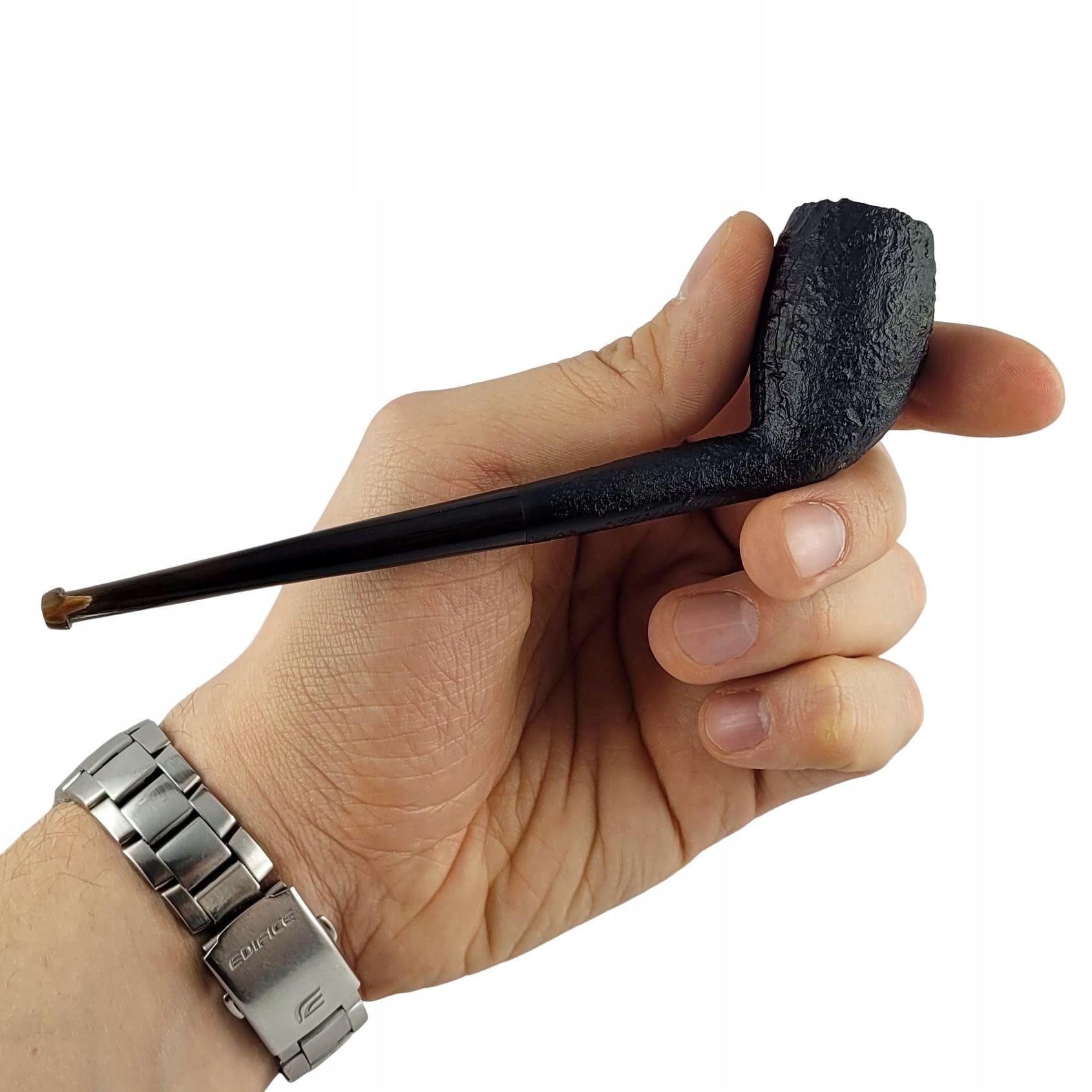 Модель Vintage Sandblast ретельно створена з увагою до кожної деталі. Піскоструминна обробка, контрастний мундштук з рогу буйвола та поліровані вручну елементи надають всьому особливого шарму. «Вирізана» форма з характерно нахиленою головою, тут у версії з дуже тонкою шиєю та довгим мундштуком. Все це дуже легке і зручне (розміри нижче) і ідеально підійде як для повсякденних занять, так і для особливих випадків. Натуральний камін, без попереднього карбонату - як і в будь-якій новій класичній трубі, тут буде потрібно правильна розпал. Люлька поставляється з оригінальним тканинним чохлом і спеціальною коробкою. Переконайтеся самі, скільки задоволення може принести вам ця чудова трубка.