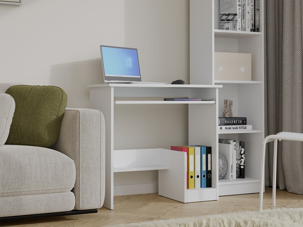 Меблі оснащені практичними рішеннями, які підвищують комфорт роботи: зручна висувна полиця для клавіатури, місце для центрального блоку комп’ютера або папок і додаткова нижня полиця для зберігання.