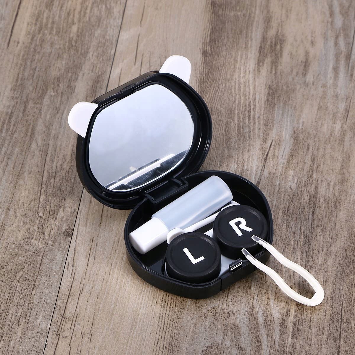 Дорожній набір для контактів у формі міні-мультяшної панди — це футляр для лінз із флаконом із розчином, пінцетом-аплікатором і дзеркалом. Кольори та малюнок панди будуть випадковими. Невеликий розмір забезпечує комфортне носіння. Завдяки портативному дизайну ваша контактна лінза залишається чистою та прозорою. Підходить для використання під час подорожей або активного відпочинку.