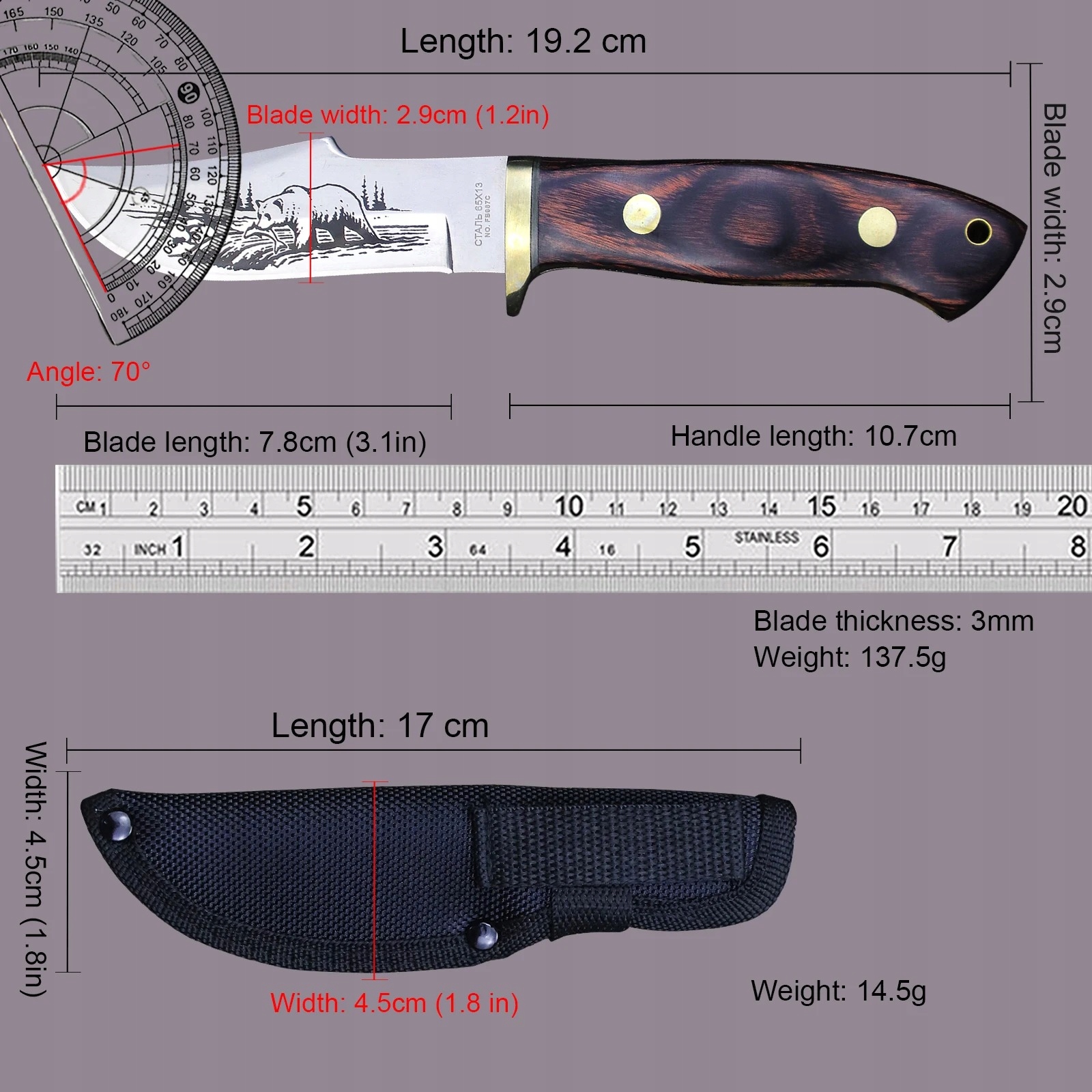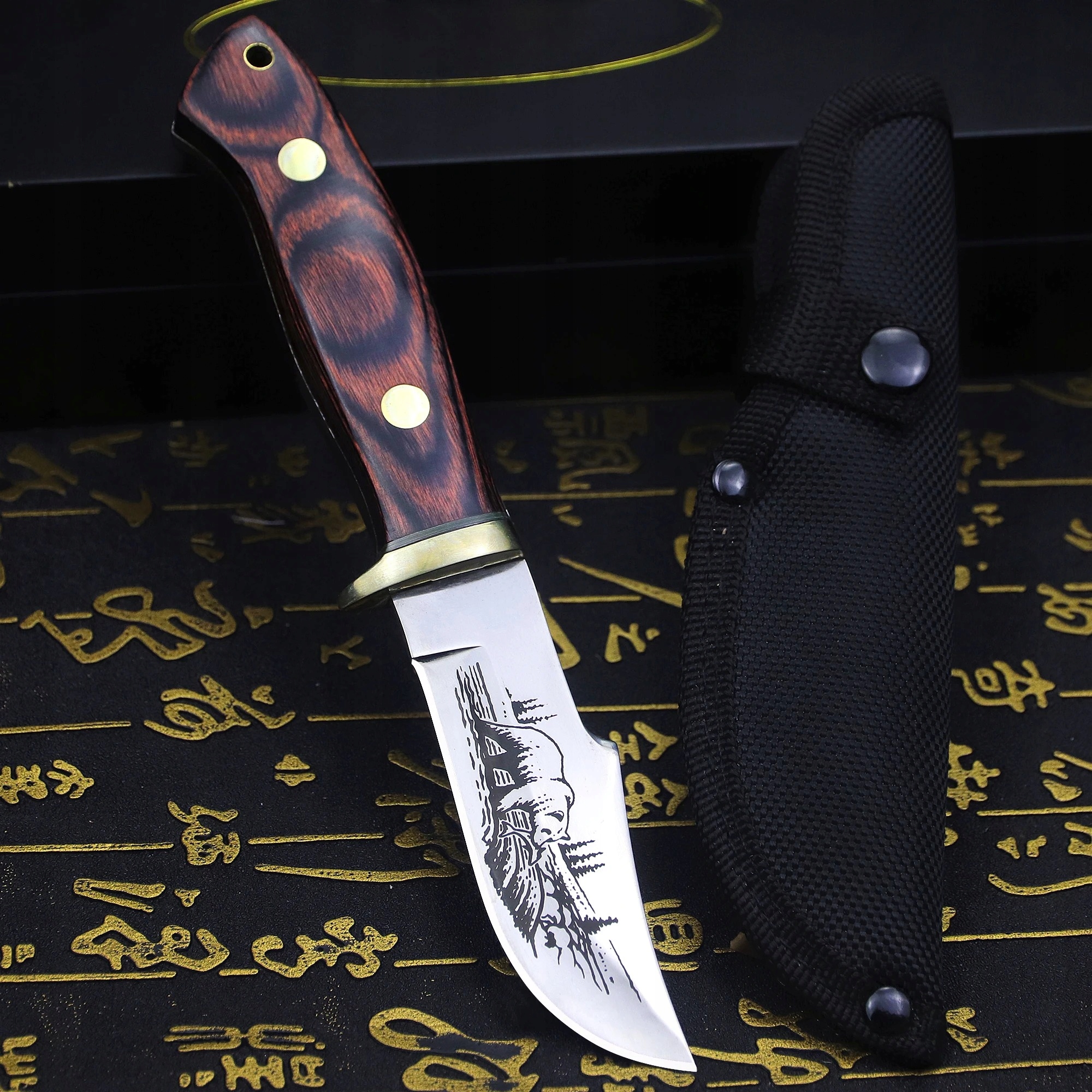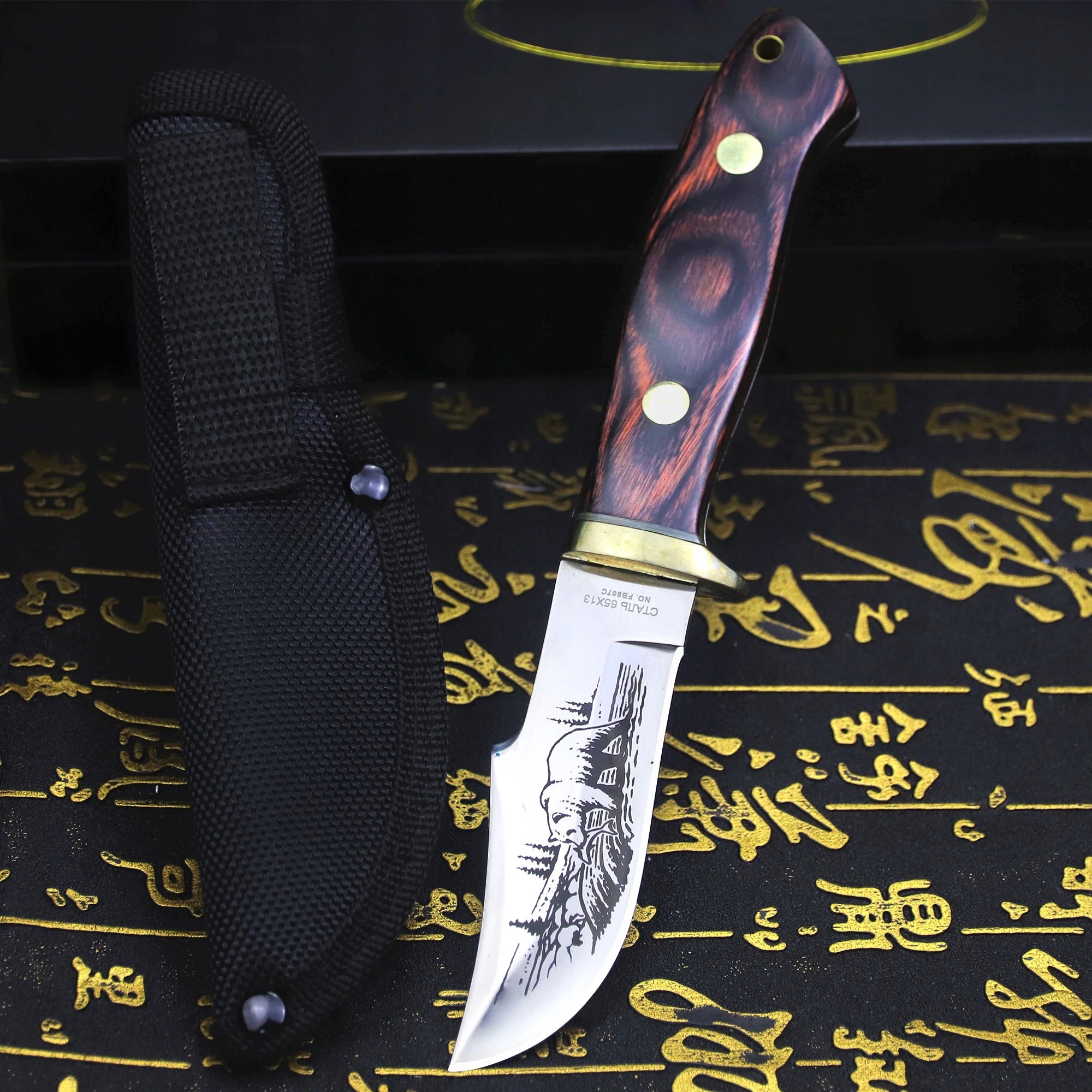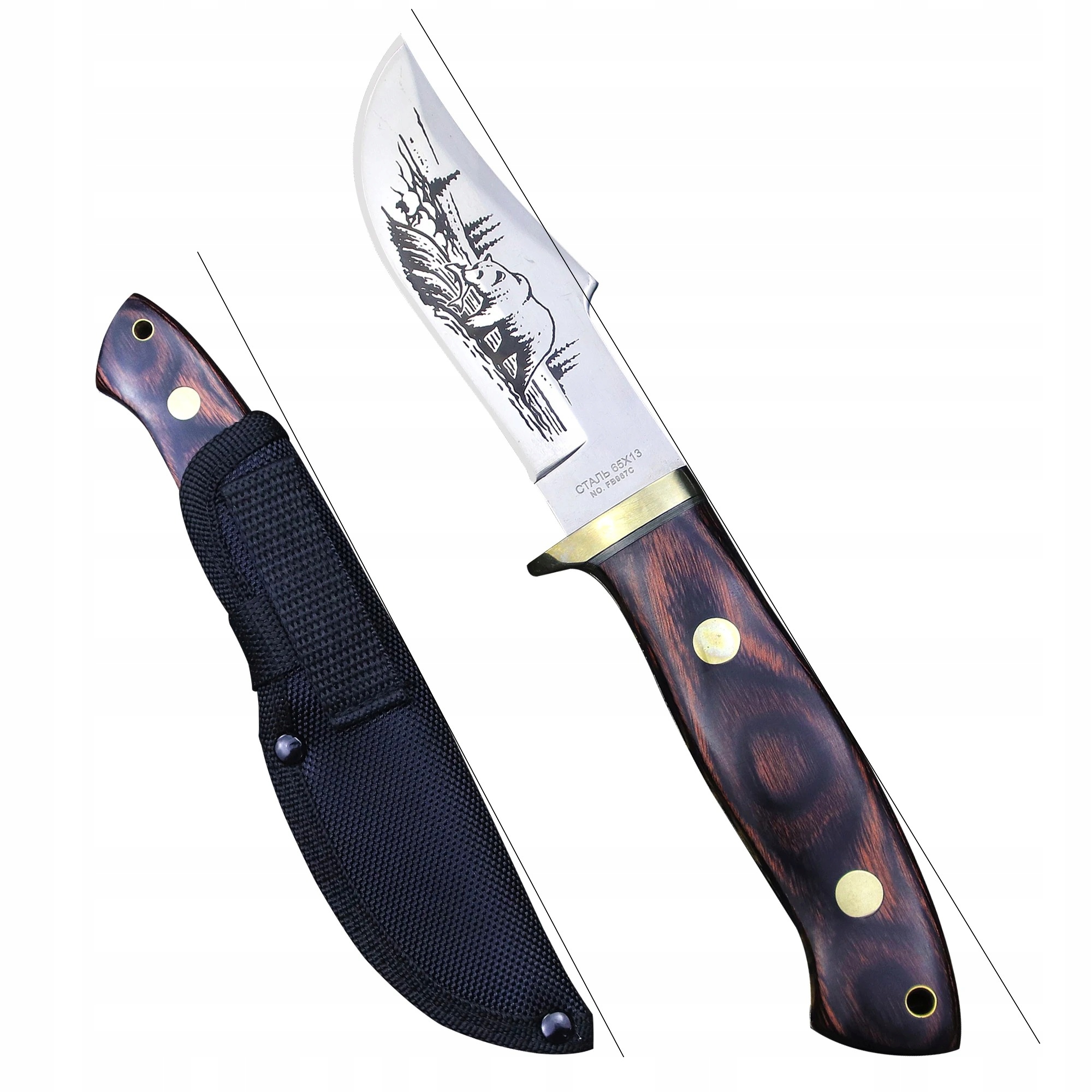 Російська сталь, інтегрований мисливський ніж, барвистий дерев’яний