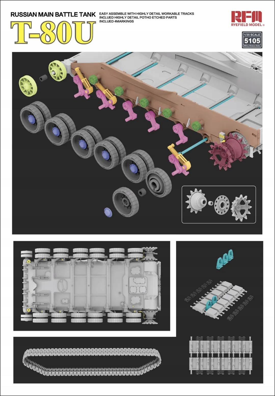 Комплект пластикової моделі радянського основного бойового танка Т-80У в масштабі 1:35.