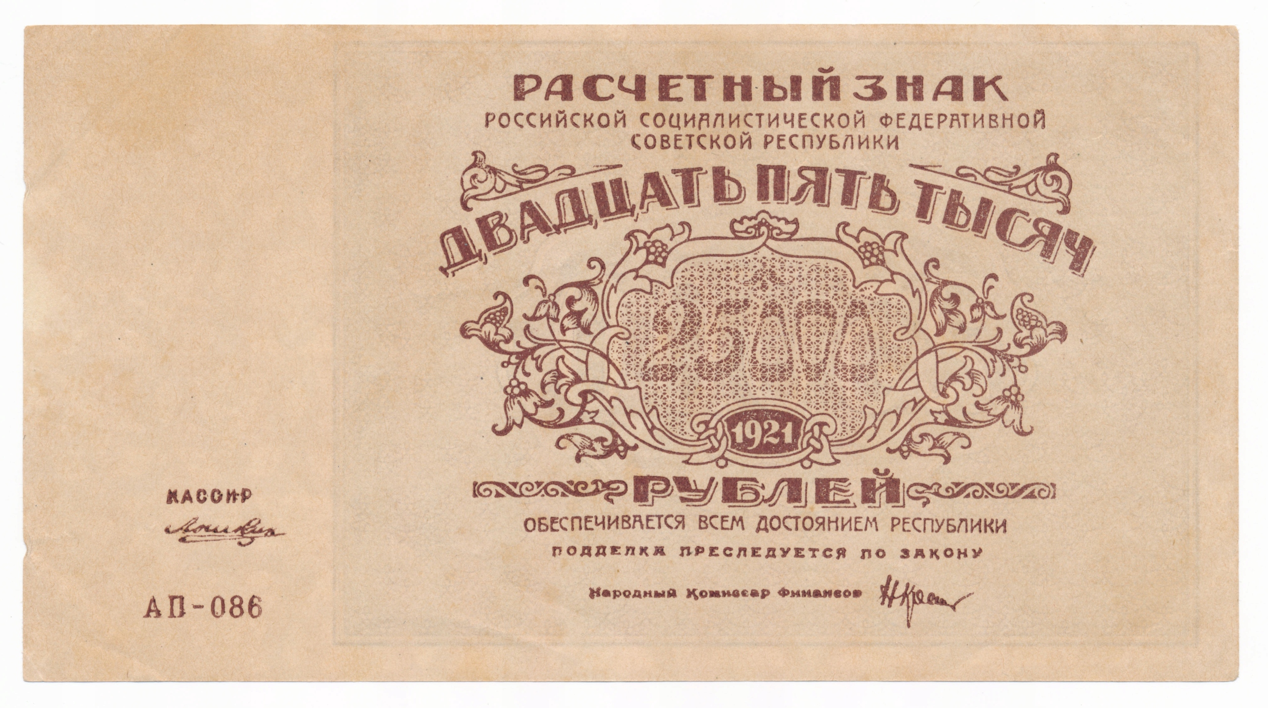 Росія, 25.000 рублів 1921, ст. 3/3+
