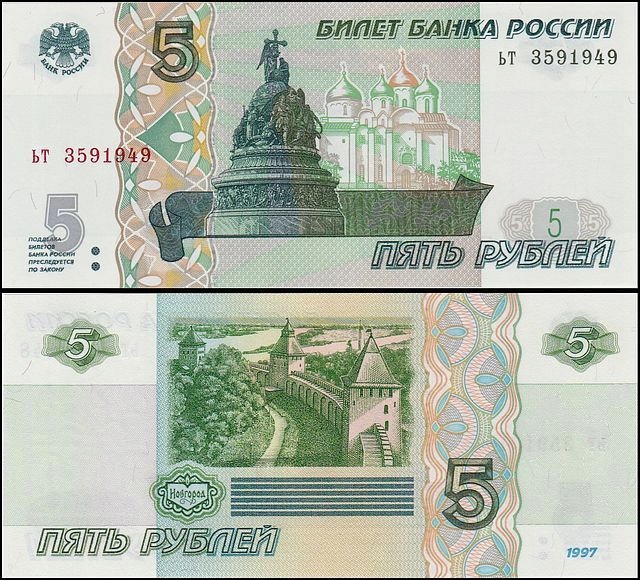Росія, 5 рублів 1997, префікс BT, Pick 267A