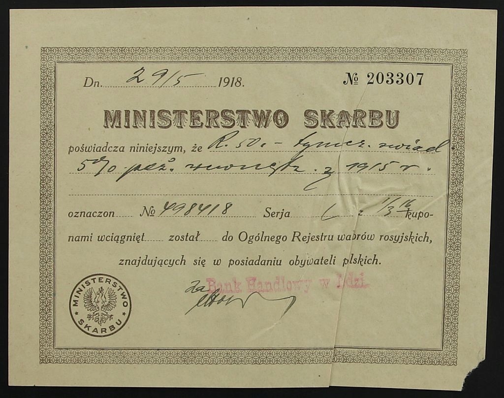 Росія, Бон на 50 рублів 1915 р. + розписка Мінскарбії 1918 р.