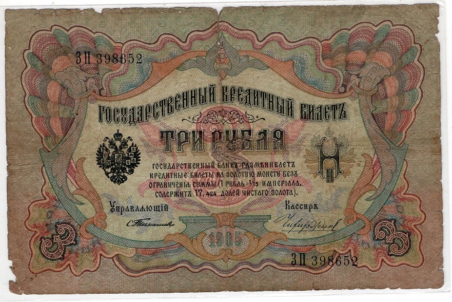 Росія 3 рублери 1905 Timishew. Стан, як у скануванні.