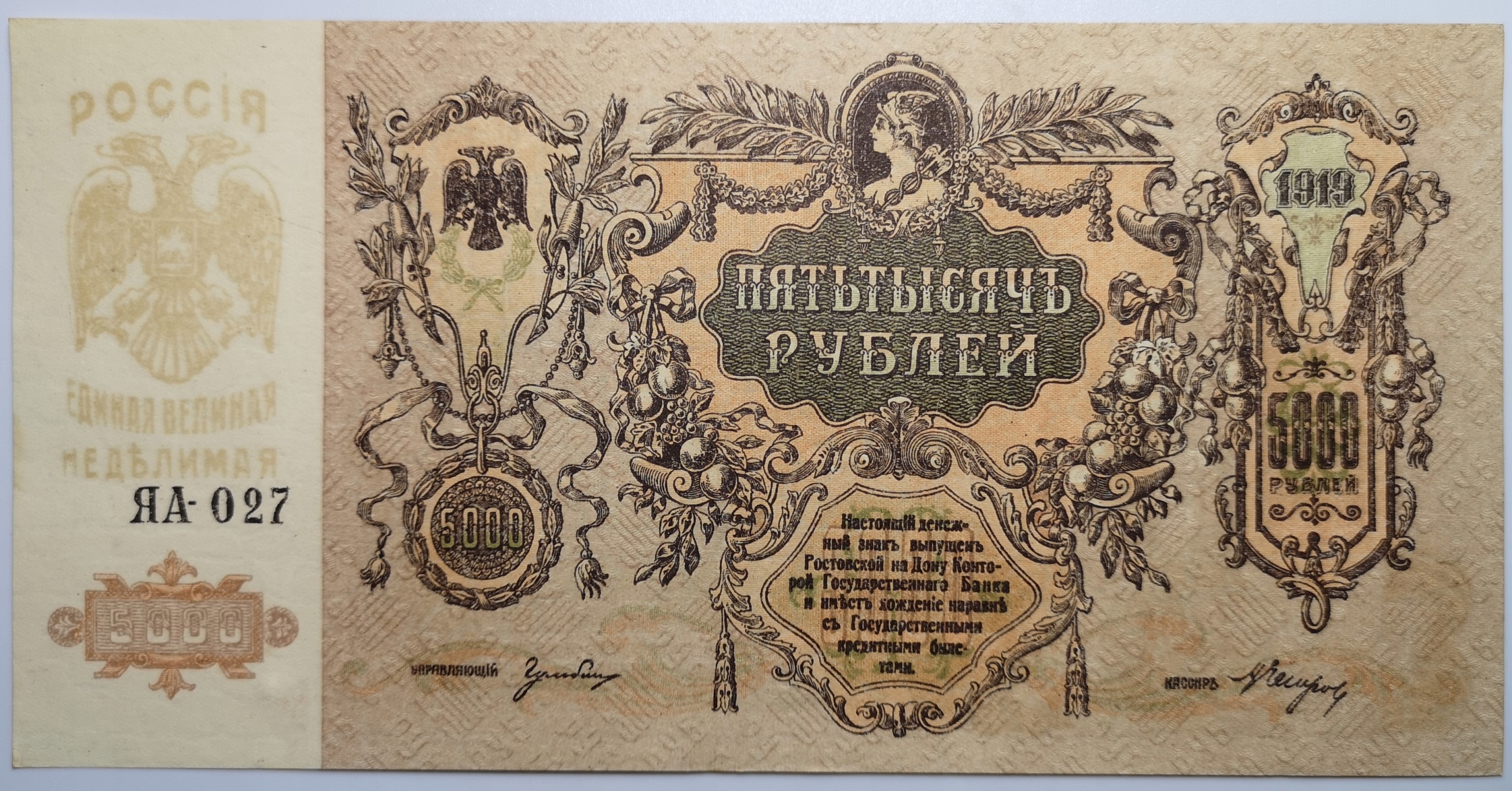Росія банкнота 5000 рублів 1919 Відмінний C25