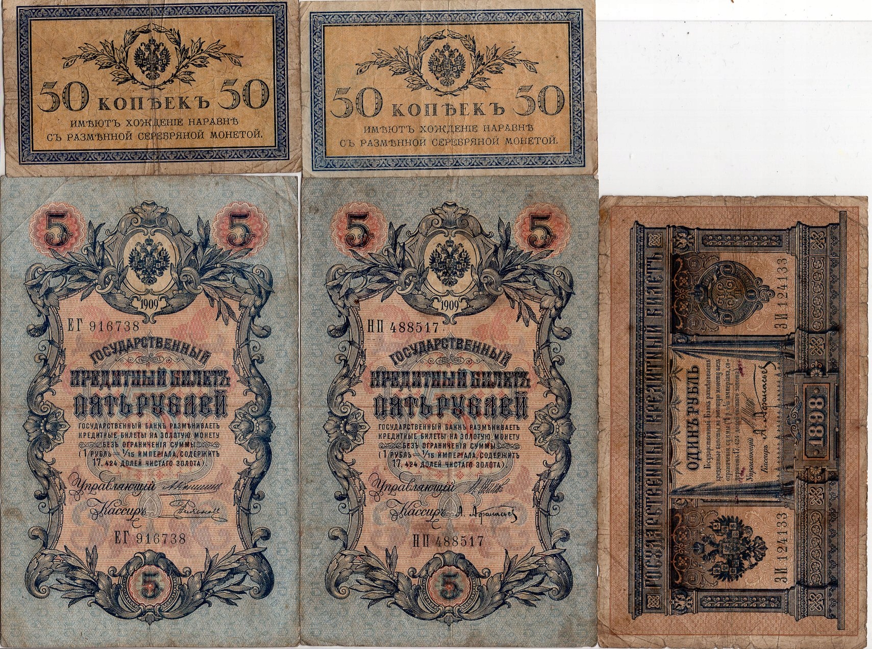Росія набір старих банкнот 5 штук. Стан, як у скануванні.