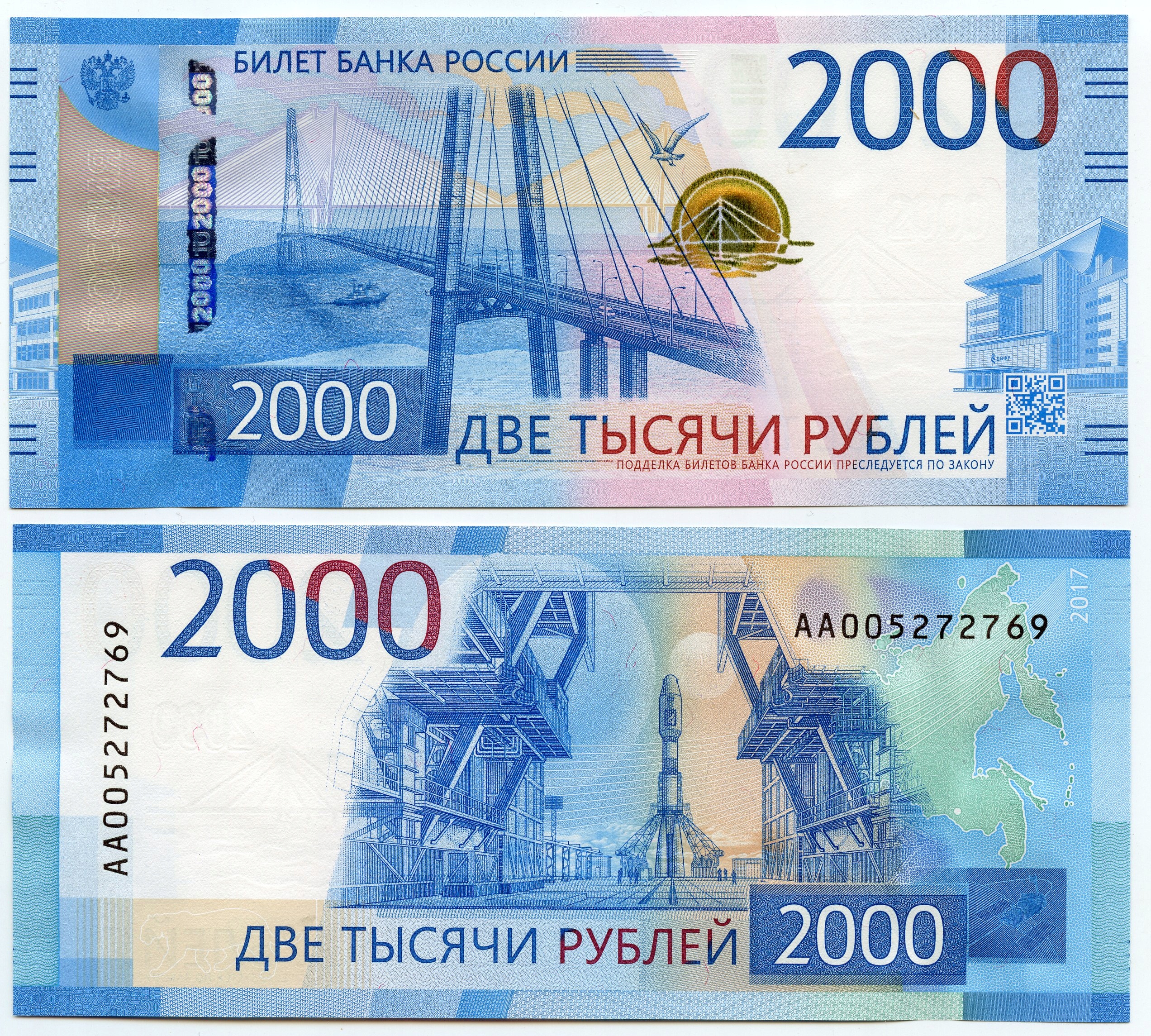РОСІЯ 2000 РУБЛІВ 2017 P-279 UNC AA, серійний номер банкноти може відрізнятися від зображеного на фото