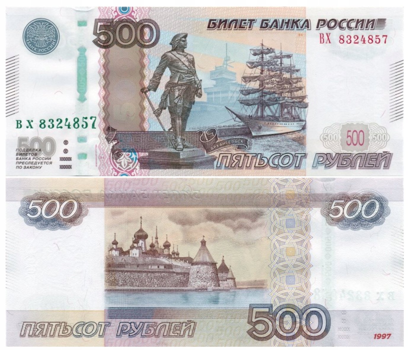 РОСІЯ 500 РУБЛІВ 2007 / 2010 P-271d UNC, серійний номер банкноти може відрізнятися від зображеного на фото