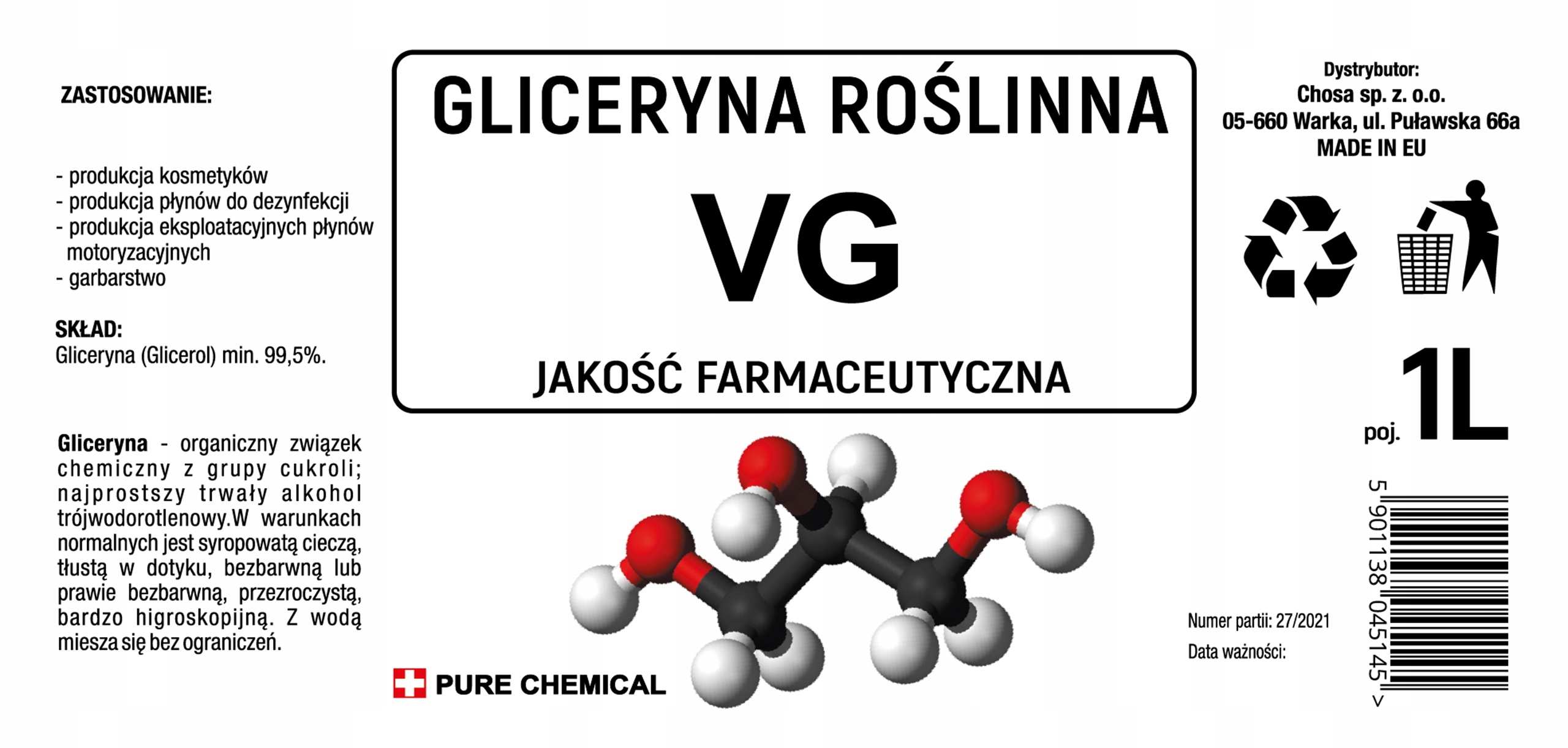 - гліцерин, VG завод, фармацевтична якість 1 літр