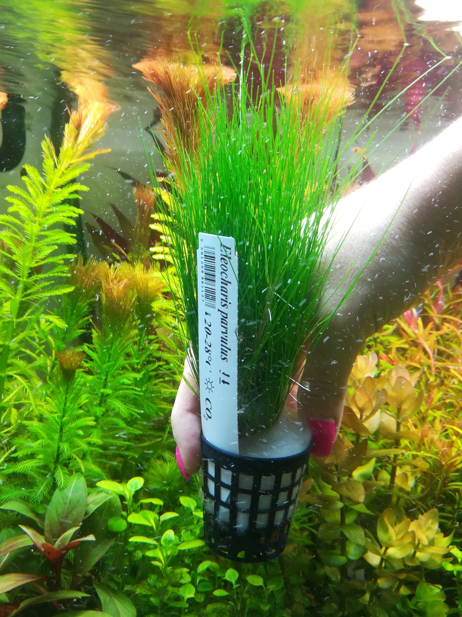 Eleocharis parvula- найнижча акваріумна трава. Він виростає максимум до 5 см і його можна обрізати. Рослина вимагає хорошого освітлення і вуглекислого газу. Створює компактний газон на передньому плані. Найкраще висаджувати його в родючий ґрунт невеликими купками приблизно 2 см один від одного.