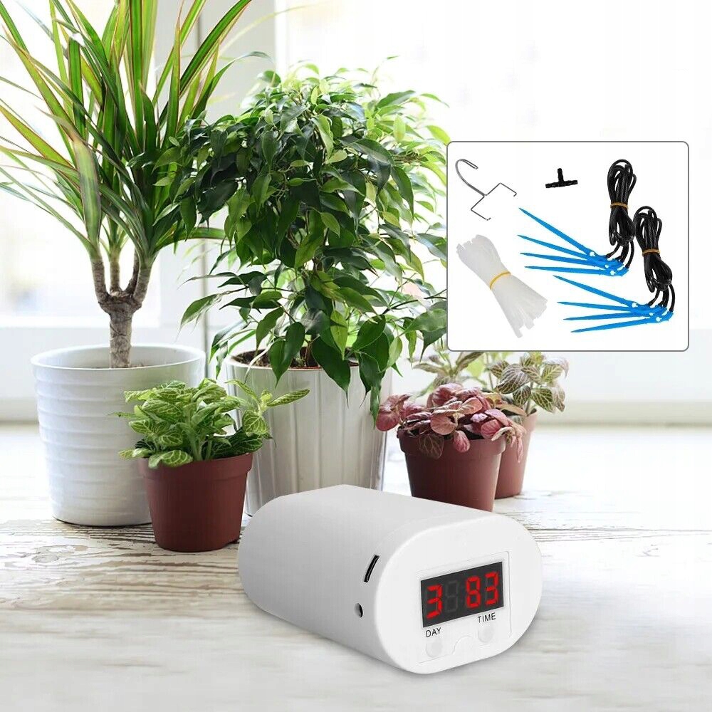 🍀【 Система автоматичного зрошення】 Ця внутрішня система зрошення ідеально підходить для поливу будинків, коли ви перебуваєте на святах або у відпустці. Встановіть інтервал часу (від 1 до 9 днів) та час поливу (від 1 до 99 секунд). Після програмування цей автоматичний набір для поливу поливатиме рослини для вас. Пристрій для поливів оснащений фільтром, який заважає його засмічувати. Вода у воді у спальні, на балконі або в саду для самодопомогових рослин. Зазвичай його можна використовувати приблизно через 2 місяці після повного заряду. Увімкнення легко створити власну систему зрошення кімнати. Набір підходить для підвісних, горщиків і навіть квіткових грядців. Підходить для поливу сукулентів у горщиках, квітках, рослинах та овочах і ідеально підходить для сімей, садів та офісів.
