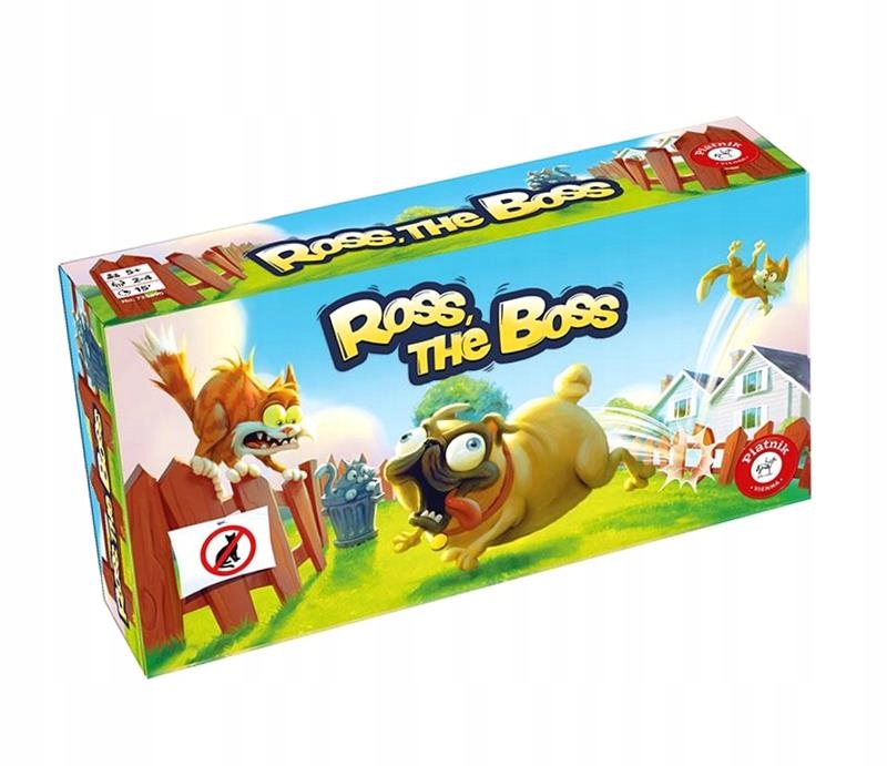 Спритний мопс Росс на батарейках захищає свою територію щосили. Якщо він побачить кота, він пожене його. Якщо він вдариться об стовп паркану, кіт полетить по високій дузі! Однак приблизно через 12 секунд Росс втрачає подих і зупиняється, щоб оговтатися та відбити наступний напад котів. Єдиним безпечним місцем для захисту котів є сміттєві баки, тому що Росс не може до них дістатися. Кожна людина може вибрати кота на старті та поставити його в будь-якому місці садової огорожі за стартовою точкою. Потім кидаємо обидва кубики. Кіт рухається відповідно до суми чисел на обох кубиках. Якщо з’являється число та символ мопса, кіт спочатку пробігає відповідну кількість кроків, а потім активує Росса, який починає відганяти котів! Якщо символ Росса є на обох кубиках, Росс негайно почне відганяти котів! Якщо один із котів перехитрить Росса та пробереться через огорожу в безпечний будинок після завершення одного кола, гра закінчується. Собака Рос живиться від трьох батарейок типу ААА 1,5 В (батарейки в комплект не входять).