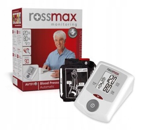 rossmax av 151 - точний електронний манометр для вимірювання артеріального тиску на плечі. Він має такі функції, як здатність запам'ятати до 90 результатів вимірювання, індикатор аритмії серця або великий розбірливий дисплей. Зручний випадок (подорож) також включений у набір з монітором артеріального тиску. Вимірювання
