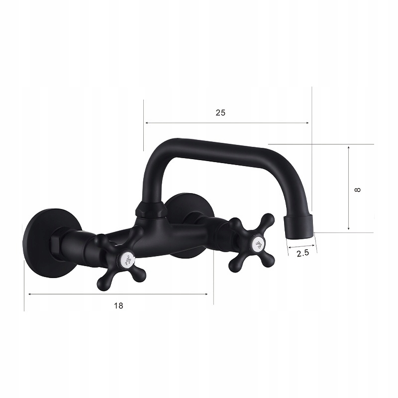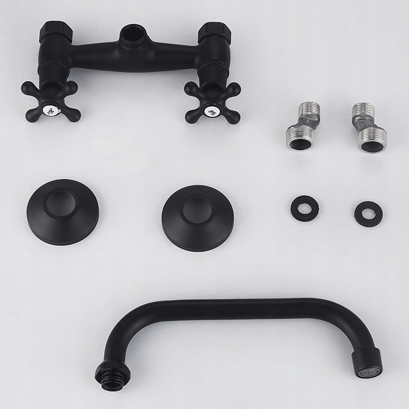 Ротаційна кухонна батарея довга носа ретро -флора чорна
