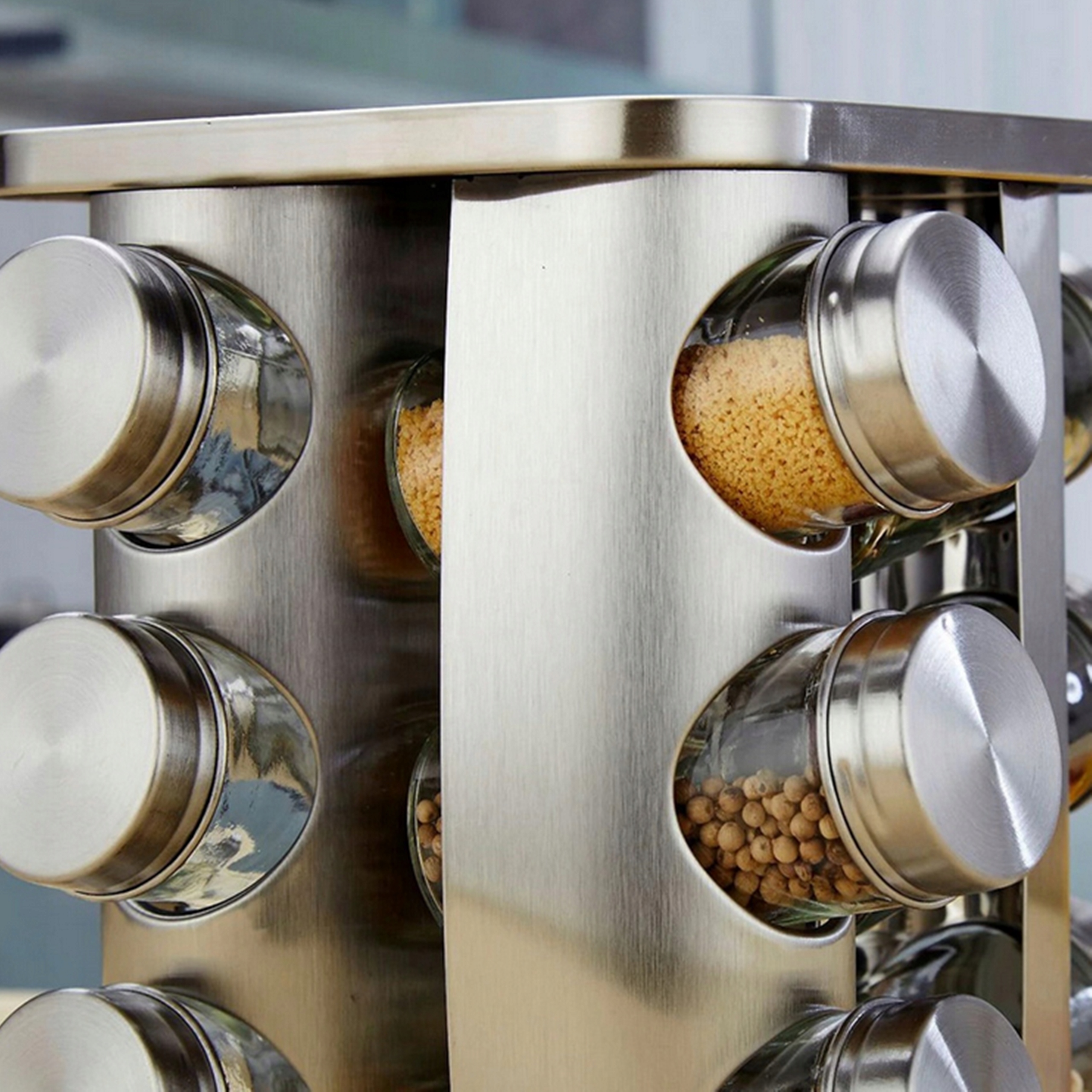 Кришки з нержавіючої сталі, що закручуються, забезпечують збереження смаку та запаху спецій, що зберігаються.