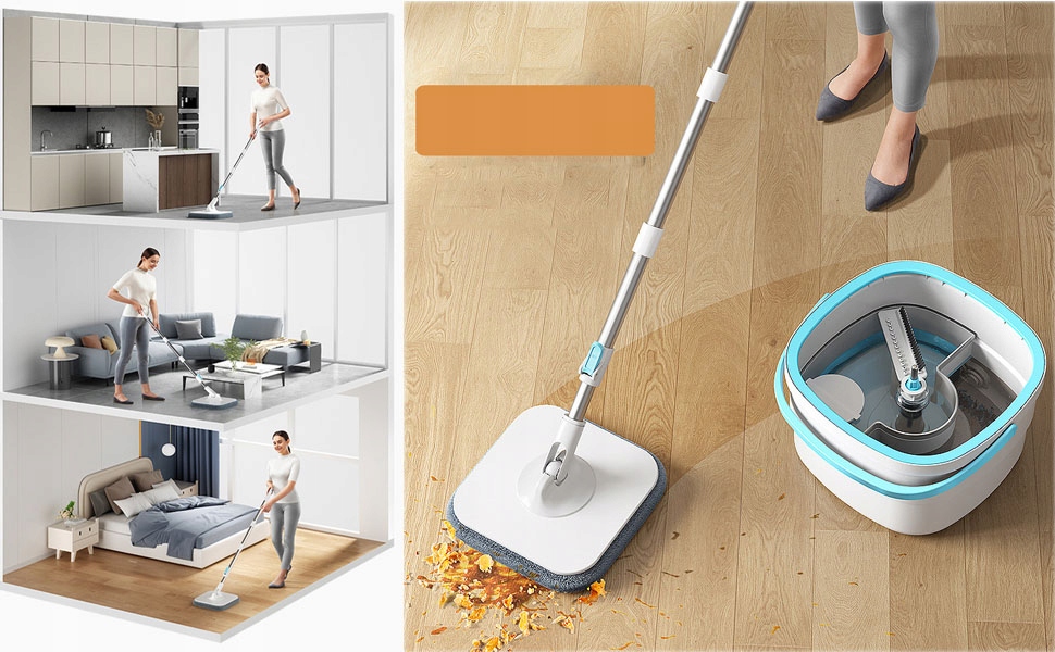 ✔️Оснащений двокамерним відром для швабри об’ємом 2,5 л із потужною системою розпилення води та вбудованою щетиною, ви можете чистити та сушити, натискаючи та обертаючи швабру. Брудну воду можна направляти безпосередньо в зону каналізації для досягнення чистого та брудного поділу.