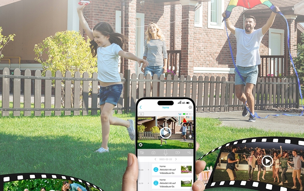 Zewnętrzna kamera bezpieczeństwa słonecznego підтримує обмін багатьма користувачами та доступу до багатьох пристроїв. Безпечне зберігання зашифровано в хмарі. Після виявлення руху, запис на картці Micro SD (не включено) або платному сховищі в хмарі (7 днів безкоштовно/кожен пристрій), всі фільми можна побачити в прямому ефірі, відтворюватися або завантажити.