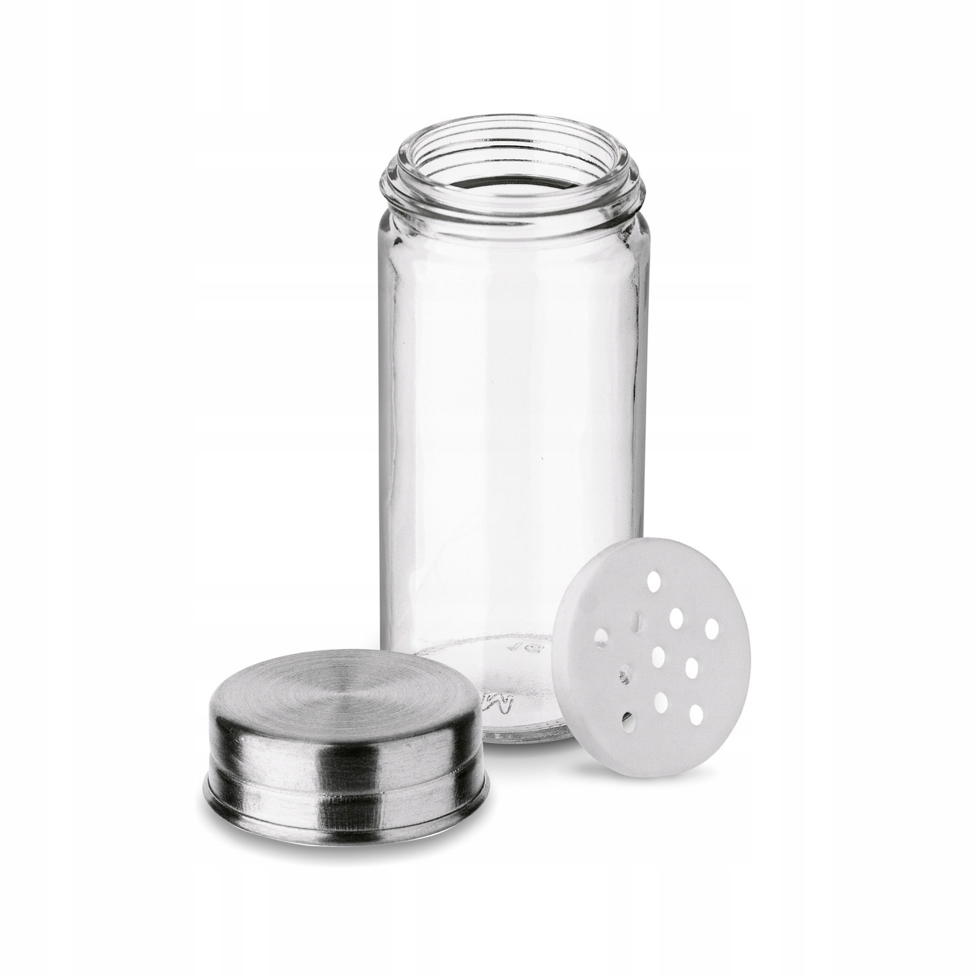 Інша інформація: - підставка з нержавіючої сталі, атласна обробка, - основа обертової стійки, - скляні контейнери з пластиковою накладкою в білому та сталевому кришці, - шалена кришка, - накладка великими отворами, що полегшують дозування спецій, - загальний вимір підставки з контейнерами: 20 х 20,5 см