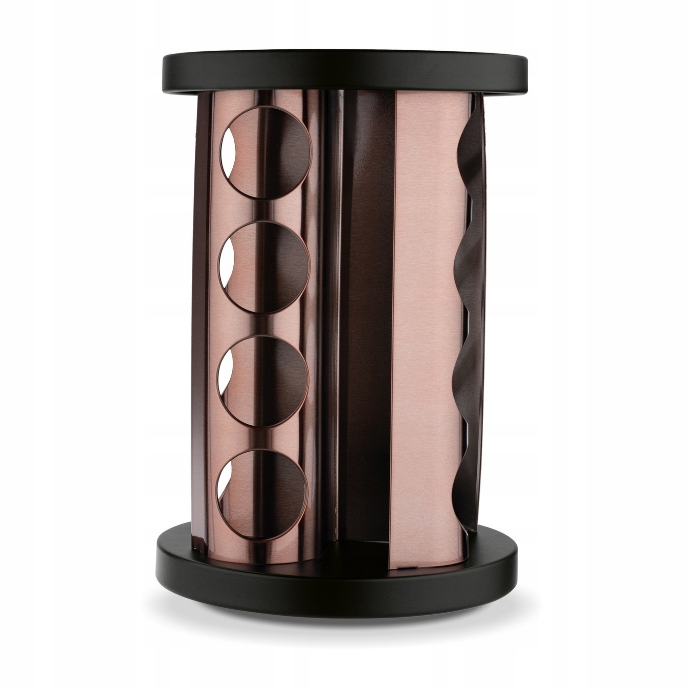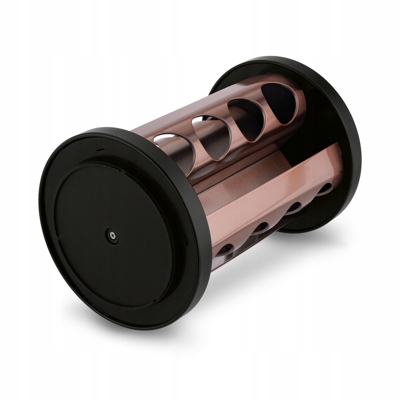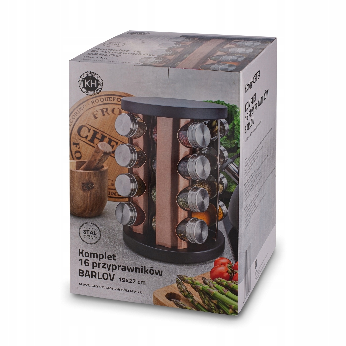 konightryffer barlov спінери поєднують довговічність та функціональність. Тут скляні контейнери мають металеві ковпачки. Накладки з отворами забезпечують ефективну та точну приправу їжі. Підставка стабільна і виготовлена з нержавіючої сталі. Його основа обертається. Метод розміщення 16 банок, що утворюють спецію, не дозволяє їм випадати під час використання або перевезення продукту. Ви можете встановити модель під рукою. Це допоможе вам організувати зберігання найбільш використовуваних спецій, таких як мелене перець, гранульований часник, базилік, орегано та кориця. Ви також зупинитесь на довше аромат і смак вмісту кожної з 16 кухонних спінів, розміщених на підставці. Він буде працювати щодня, під час сезонного гриля, і навіть коли створює соуси піци або легкі салати для романтичної вечері. У вас також є можливість легко знайти спеції, оскільки банки для спецій прозорі. Це гарна ідея для подарунка - стильний дизайн підходить до різних кухонних композицій!