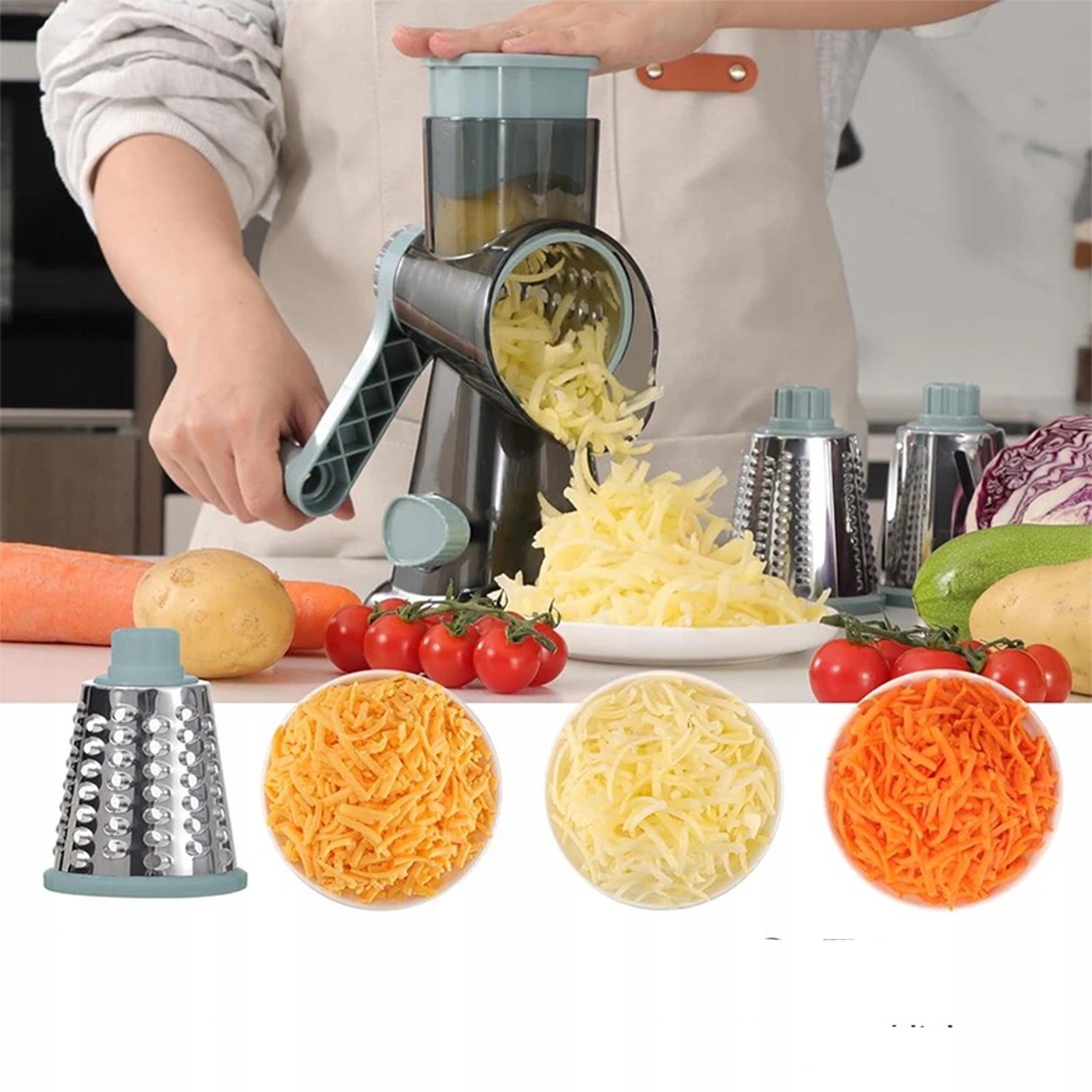 ⭐️Роторна терка 3 в 1 - швидке та точне натирання овочів та сиру⭐️