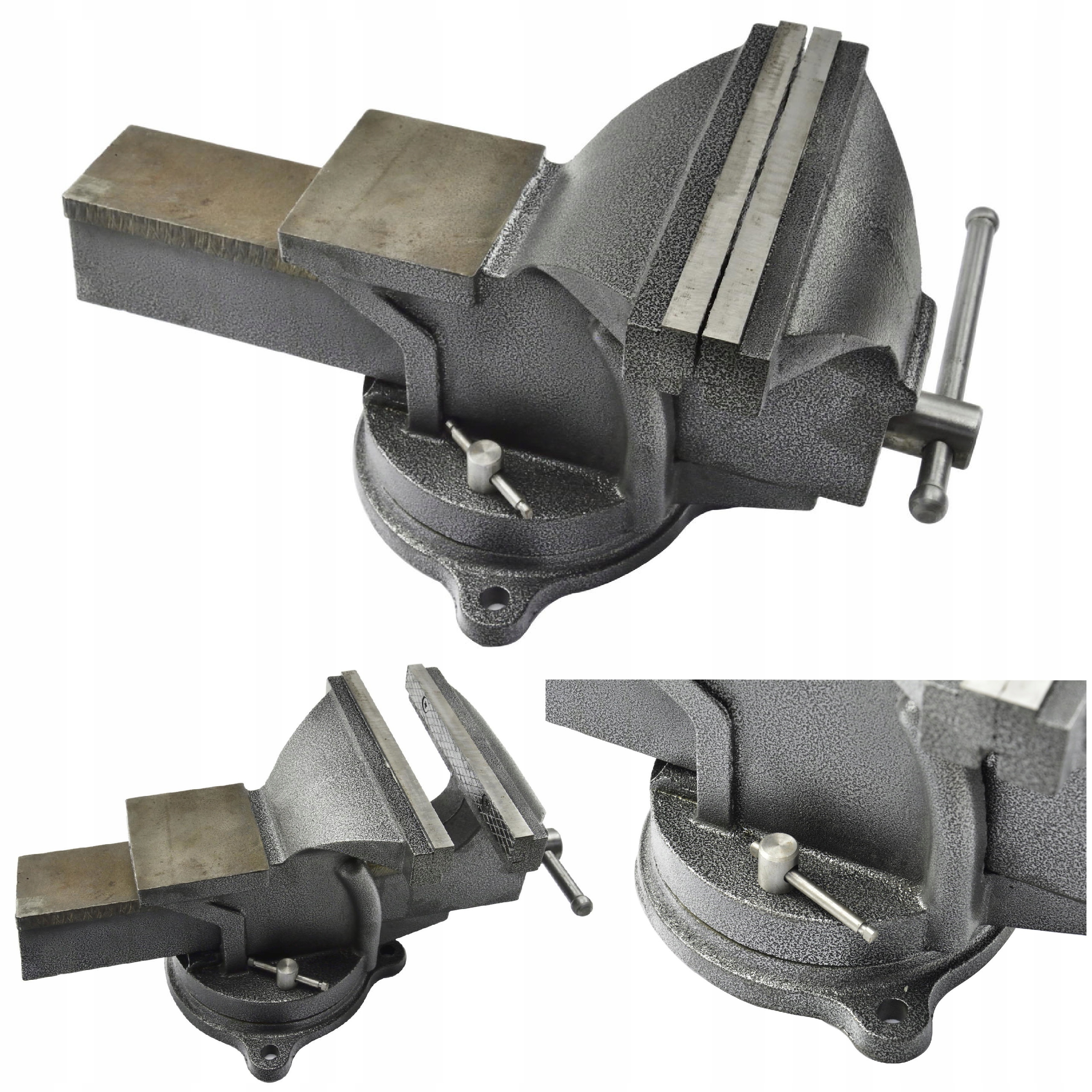 Лещата слюсарні поворотні, виготовлені з високоякісних матеріалів. Сталеві губки лещат з протиковзкими поперечними нарізами, додатково загартовані. Міцна і надійна конструкція дозволяє надійно фіксує обраний нами предмет у лещатах і гарантує тривалий термін служби.
