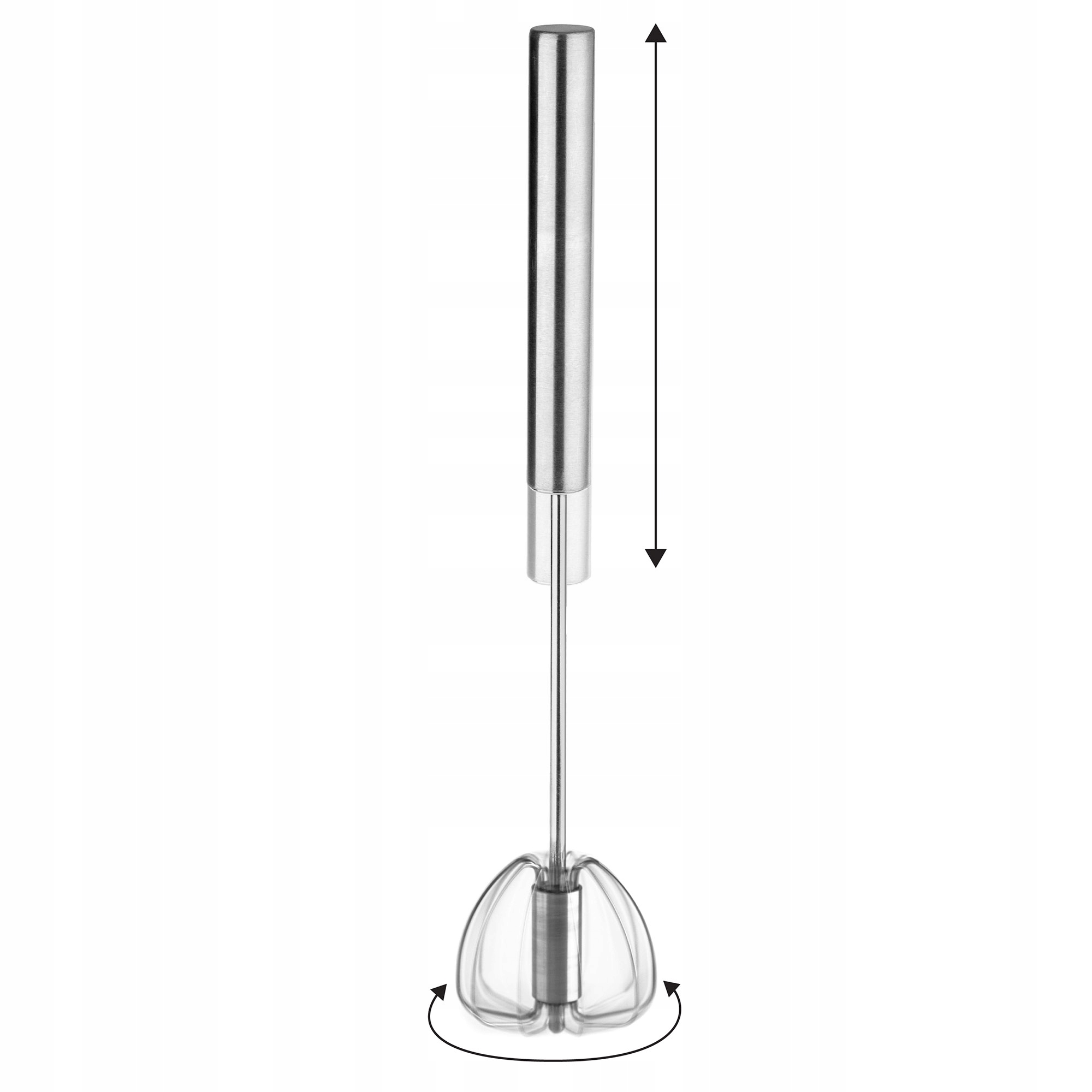 функціональний обертовий батог , який є другом кожної господині при збитках яєць, змішування піни з білків, супу, соусу. Продукт простий у використанні, просто перемістіть ручку вгору і вниз і змішуйте мить око. Забезпечення та зручності використання продукту забезпечують безпечну та ефективну підготовку партійного меню. Пункт також корисний при підготовці яєчня для сніданку, коли вам потрібно швидко та ретельно змішати яйця.