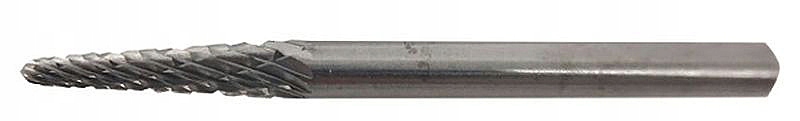 Твердосплавний поворотний напилок, закруглена конічна форма, розмір 3x13 мм, хвостовик 3 мм, стандартна нарізка зі стружколомом.
