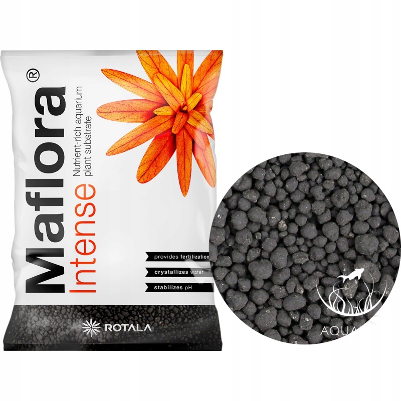 Maflora Intense - багатий на поживні речовини та мінерали субстрат для акваріума з водними рослинами. Виготовлений з натуральної чорної вулканічної землі та органічних добавок, багатих мікро- та макроелементами, такими як азот, фосфор, калій та залізо. Поживні речовини, що містяться в субстраті, постійно доступні для рослин і сприяють їх кращому розвитку в акваріумних умовах. Спеціальний процес виробництва надає субстрату Maflora Intense унікальні властивості, ідентичні Maflora Light із ще сильнішою формулою добрива.