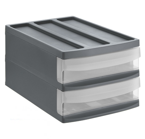 Системний контейнер середнього розміру оснащений двома ящиками, які рухаються без зусиль завдяки посібнику з роликів. Ящик не може випасти завдяки практичному висувному замку. Стабільні гумові ноги на підлозі забезпечують тверду спинку контейнера і запобігають подряпинам на чутливих підлогах. Контейнер Systemix з ящиками також доступний у 5 інших розмірах. Усі варіанти продукту можна покласти один на одного, відповідно до ваших потреб, і, таким чином, поширюватися на індивідуальну систему організації.