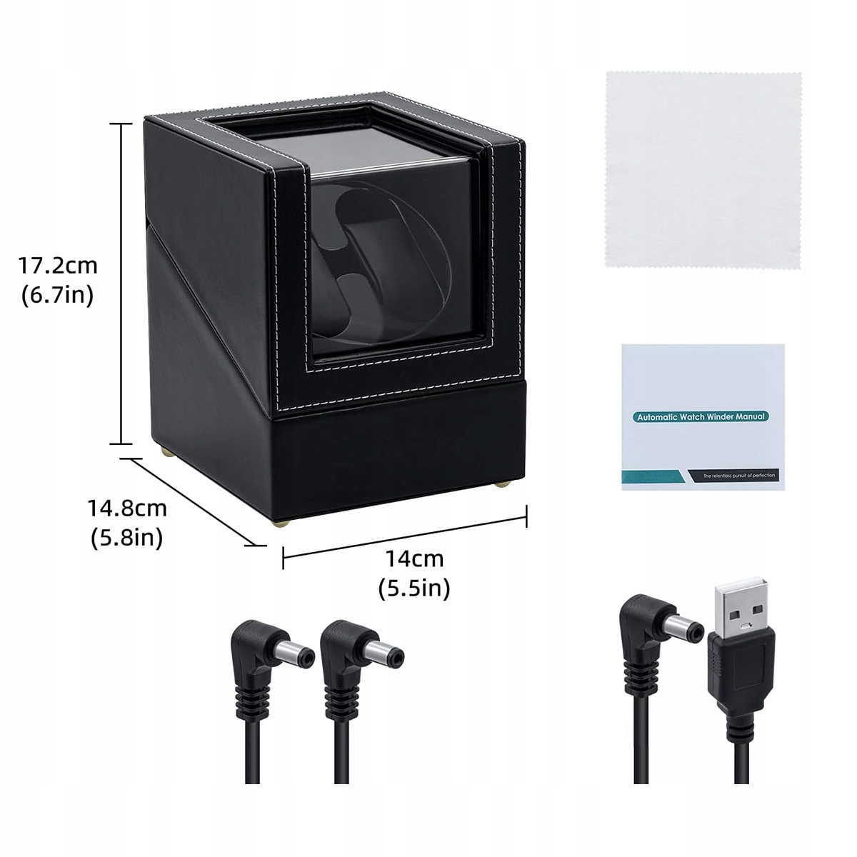 ✅✅✅Ротомат для 2-х годинників, заряджається через USB-DC, автоматичний ротомат TPD 970-2430, два режими заводу для автоматичних годинників, ротомат з PU шкіри - чорний✅✅✅