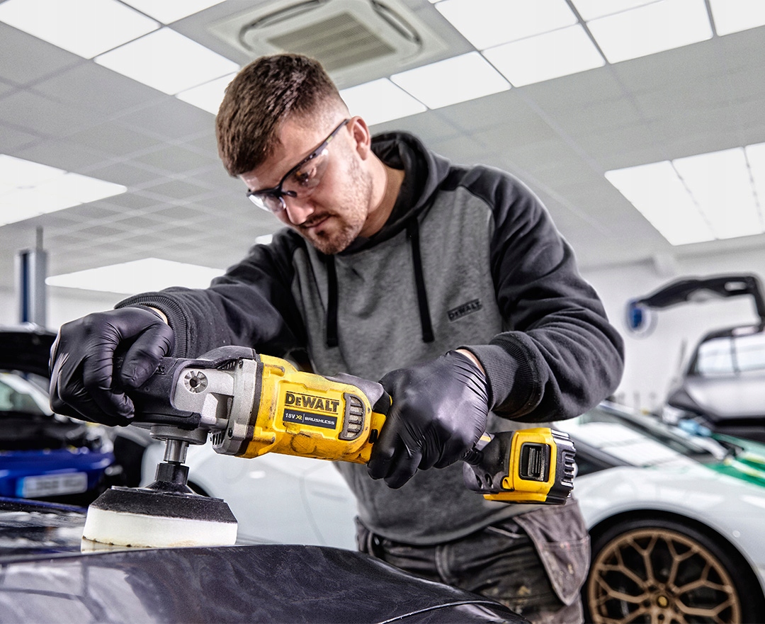 - професійна акумуляторна полірувальна машина 18 В з ефективним безщітковим двигуном для складних застосувань у кузовних і фарбувальних майстернях