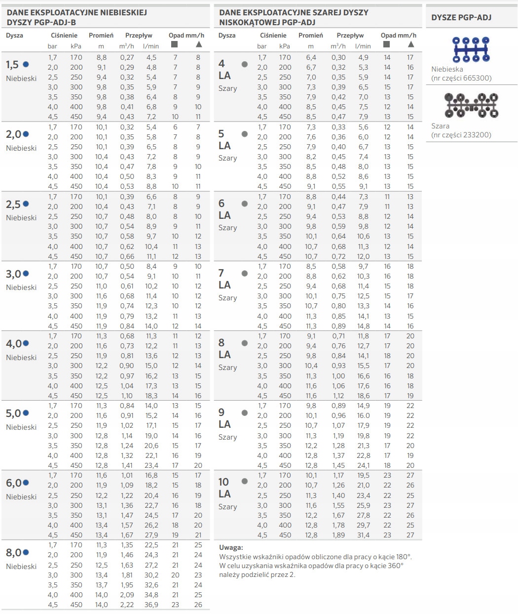 - Доступно три типи форсунокзалежно від типу землі, що зрошується: стандартна червона, стандартна синя, сіра під низьким кутом