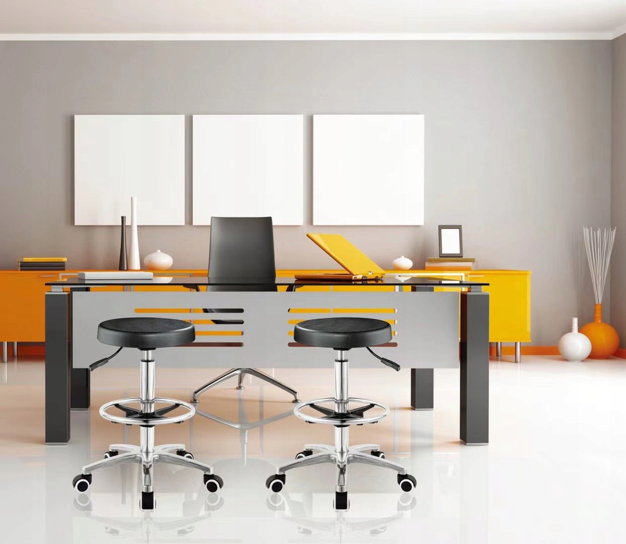 Оббивка міцна, довговічна та пожежобезпечна. Стілець має регульовану висоту та стійку основу, підставку для ніг, колеса або ніжки.